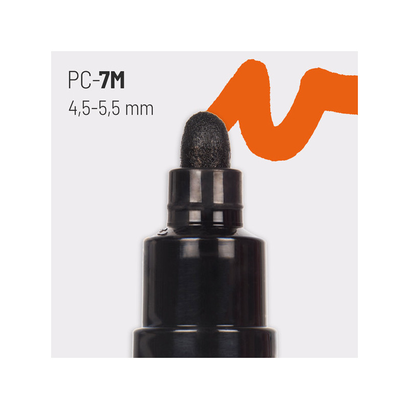 Grâce à sa large pointe conique de 4,5 à 5,5 mm, le feutre PC-7M est idéal pour colorier des grands formats. Très précis et super pratique et il s'adresse autant aux professionnels qu'aux amateurs. Cet un marqueur que beaucoup de street artistes utilisent. Et ceux qui pratiquent les loisirs créatifs ne peuvent plus s'en passer.