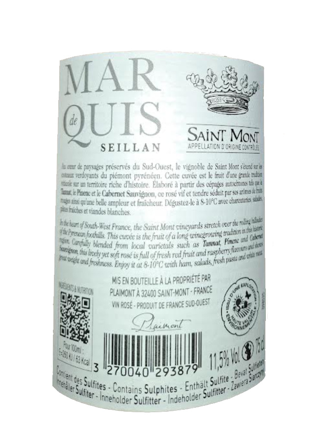 | Libellé | Marquis De Seillan, 2024 - Saint-Mont AOP - Rosé - 75 cl |