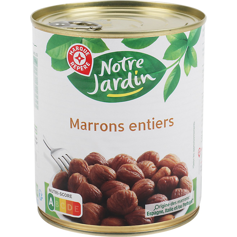 Ingrédients : Marrons 85 %, eau, sucre, sel.
