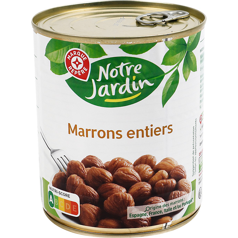 Ingrédients : Marrons 85 %, eau, sucre, sel.