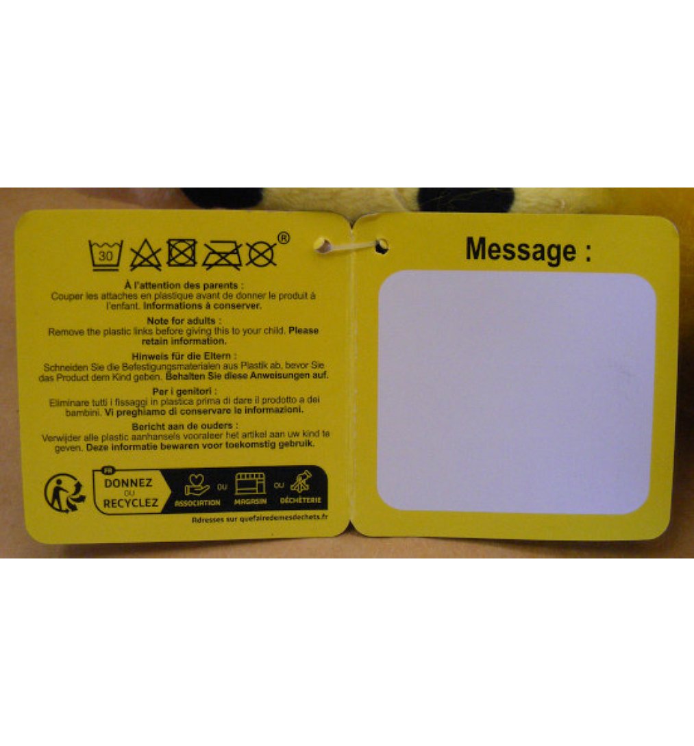 Avertissements À l’attention des parents : Couper les attaches en plastique avant de donner le produit à l’enfant. Informations à conserver.