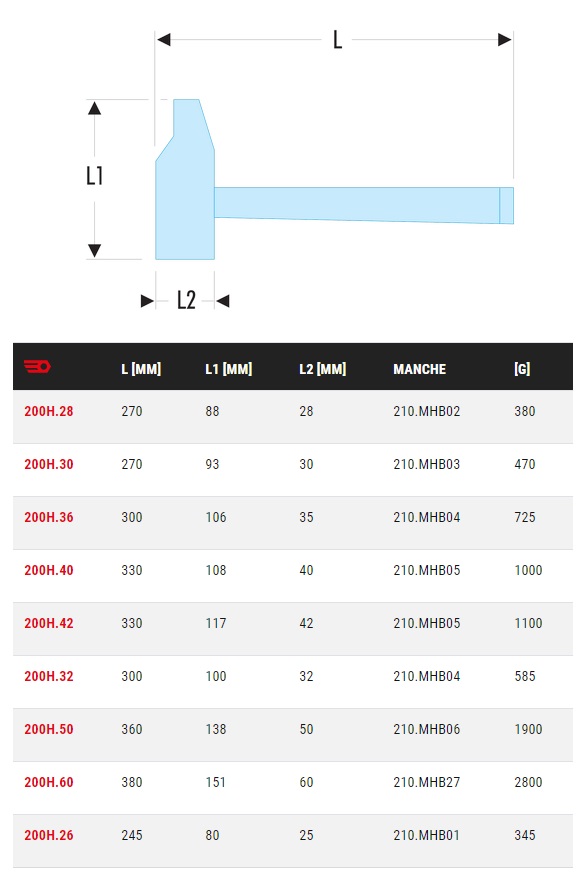 | Libellé | Marteau de mécanicien rivoir à manche bois Hickory 28mm - FACOM - 200H.28 |