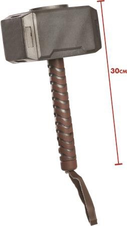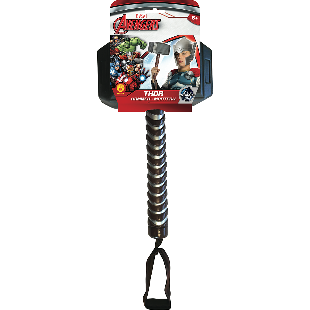 Le Marteau Mjölnir de Thor en plastique. Anse en tissu effet cuir marron pour un maintien plus facile. Accessoire idéal pour compléter le déguisement de Thor.