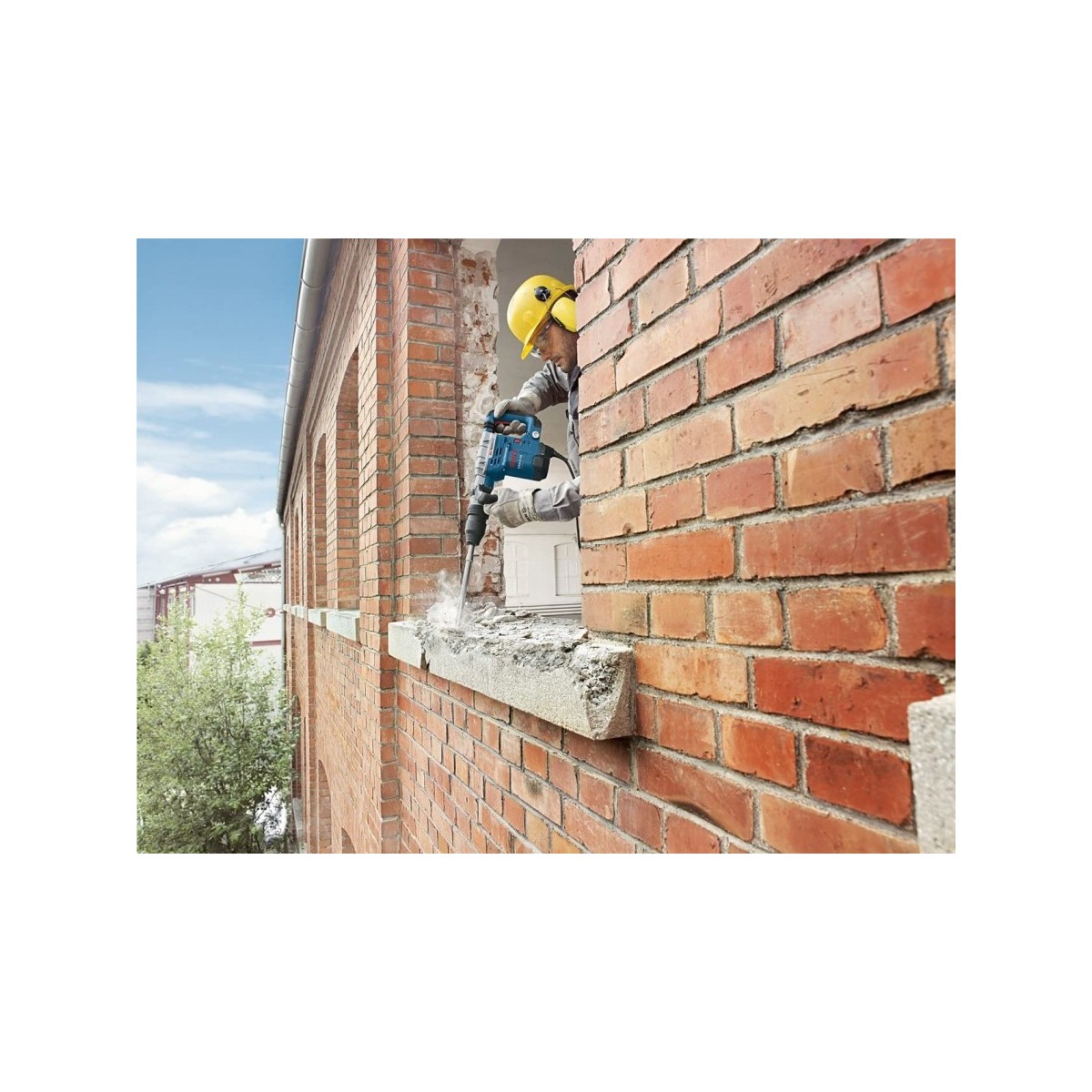 Le marteau-piqueur filaire SDS max GSH 5 CE Professional est composé d'un système de lubrification optimisée et d'éléments métalliques robustes. Il offre une bonne prise en main confortable lors de son utilisation et diminue la fatigue pour les interventions exigeantes. Avec son système Vibration Control et sa légèreté, l'outil offre un grand confort d'utilisation. Doté d'un puissant moteur avec une force de frappe de 8,3 J, il permet un enlèvement de matière élevé. Le marteau-piqueur filaire SDS max est utilisé pour des travaux de burinage à l'horizontale dans la pierre et le béton. Il est adapté avec la disposition d'aspiration de poussière GDE max Professional.