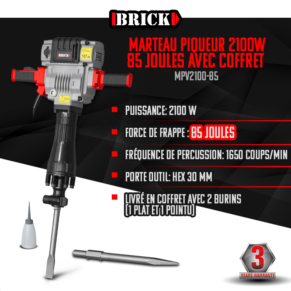 | Libellé | Marteau piqueur PRO 2100W - 85 Joules avec coffret - Brick |