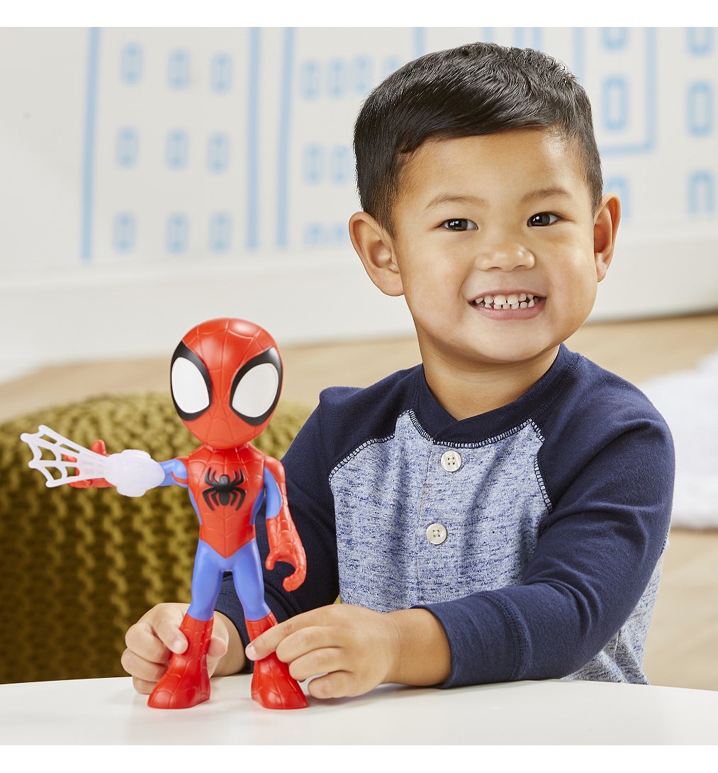 Figurine de Spidey spécialement conçues pour les plus petits, faciles à attraper et à manipuler. Taille 23 cm. 4 points d'articulation : tête, taille et bras. Issue du dessin animé Spidey et ses amis extraordinaires