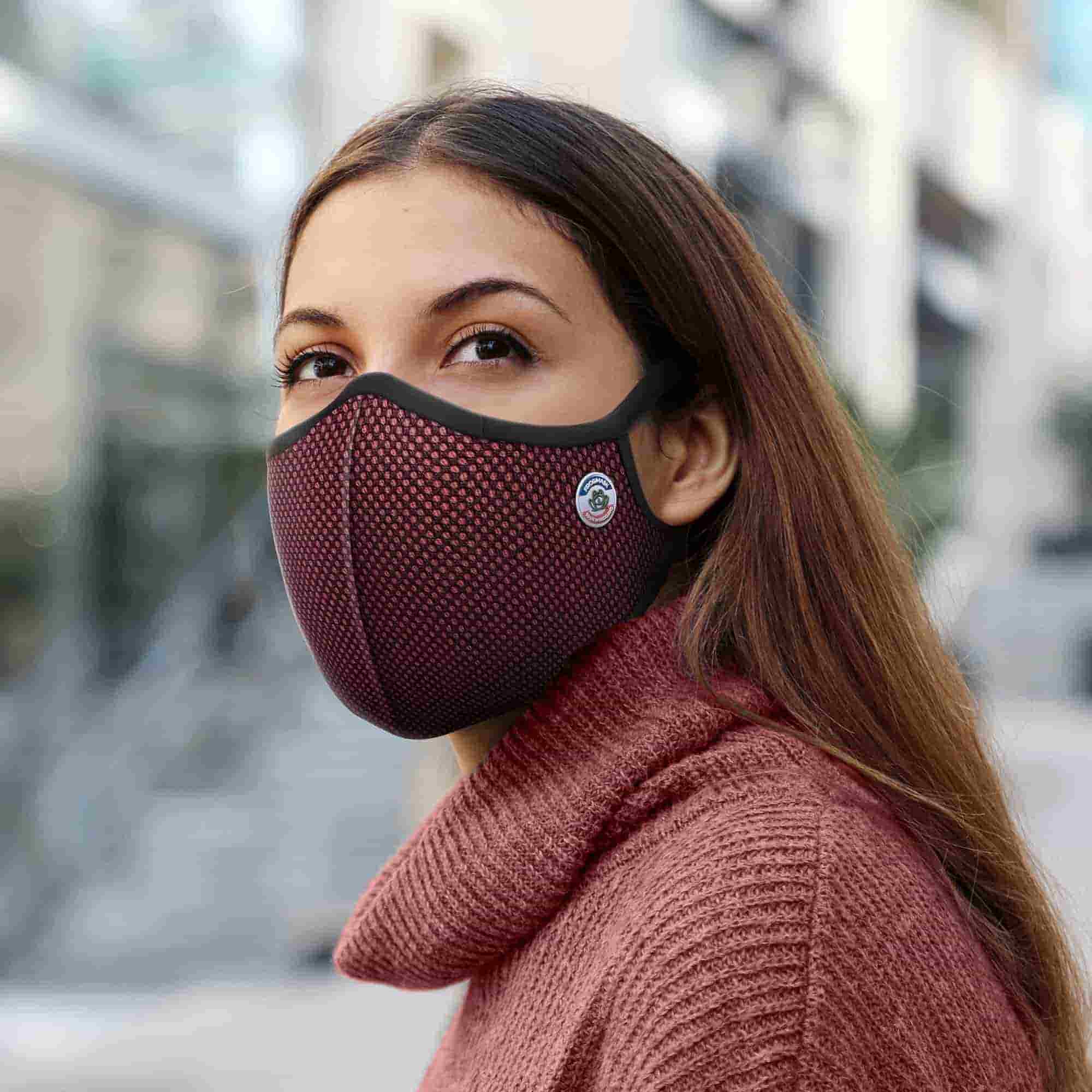Masque anti-pollution vélo et moto Frogmask bordeaux avec filtres FFP2