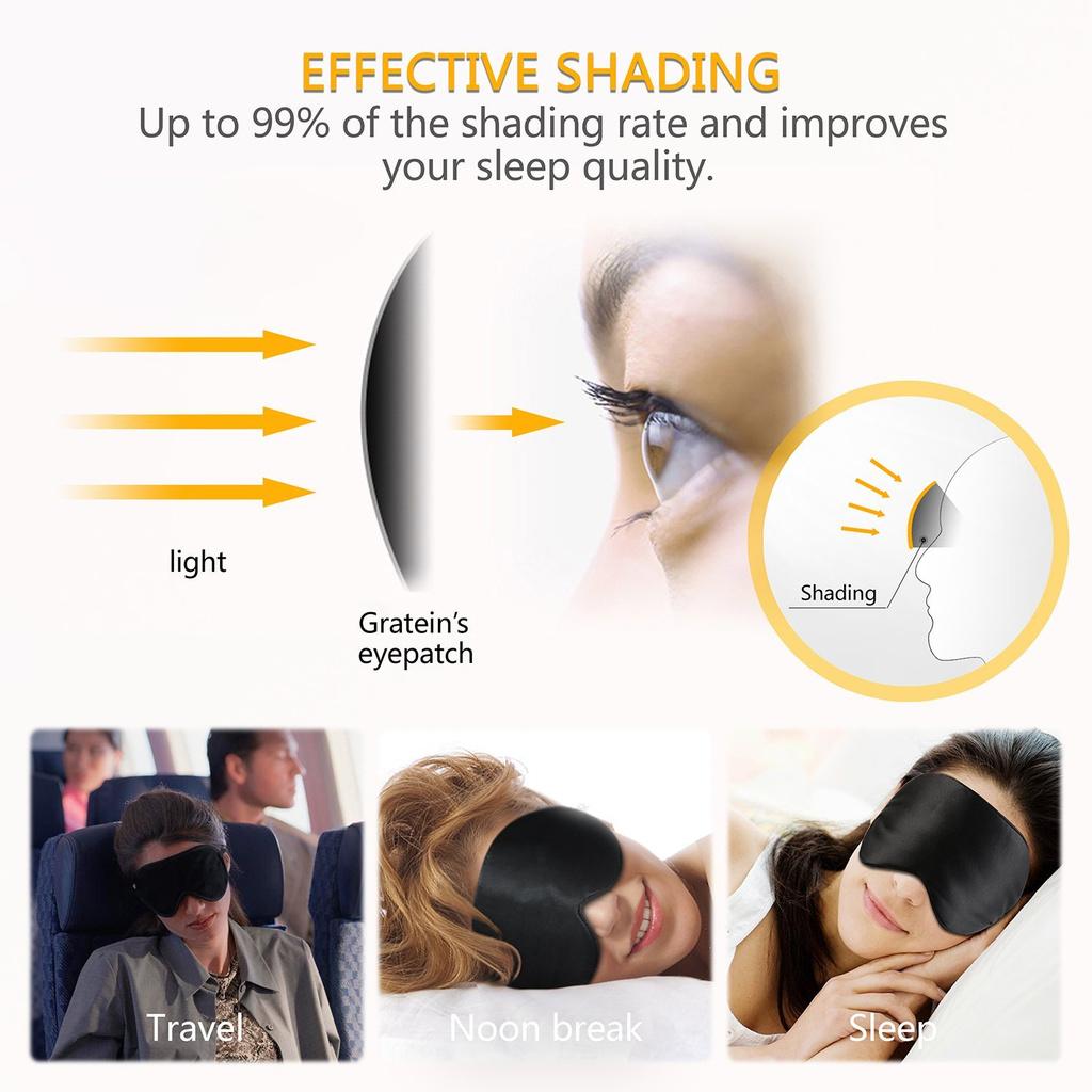 Taille réglable et universelle : Le masque pour les yeux s'adapte à tout le monde, il a une bande élastique et réglable pour un ajustement sûr et confortable. La soie douce et lisse est agréable sur le visage.