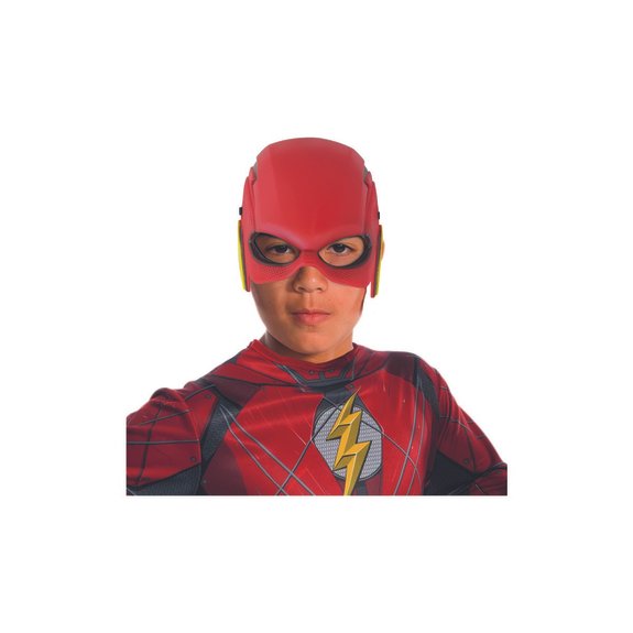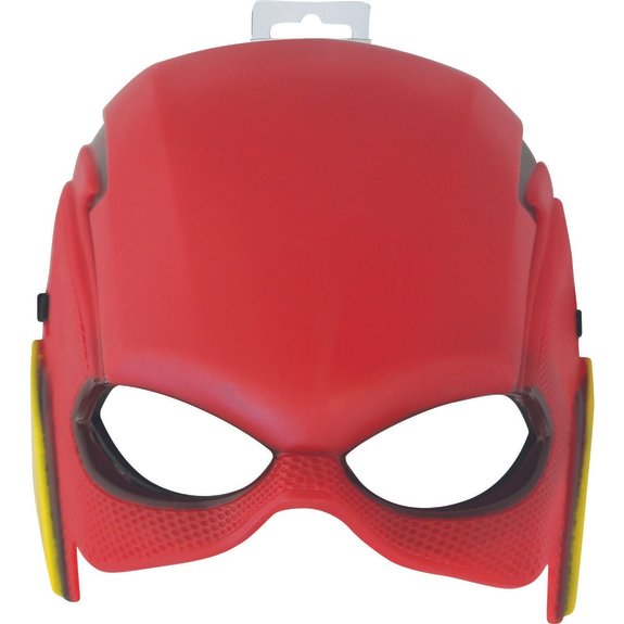 Un masque en PVC rouge et jaune à l’effigie de Flash. Attache élastique à l’arrière avec système de fermeture velcro.