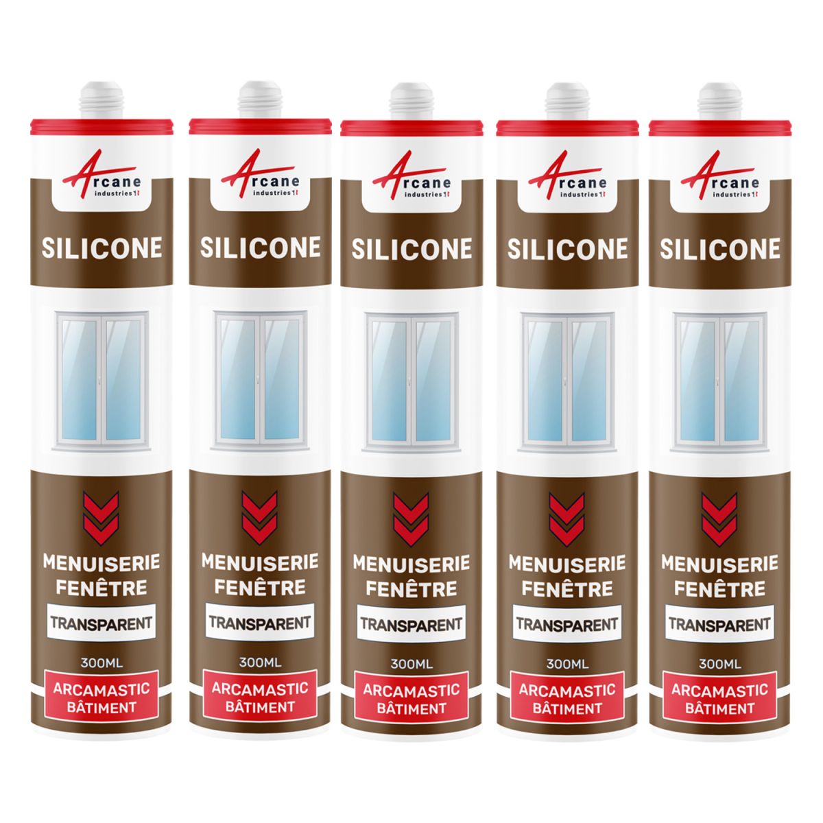 | Libellé | Mastic Silicone intérieur / extérieur pour fenêtres et menuiseries : ARCAMASTIC BATIMENT Transparent - 300 ml x 5 - ARCANE INDUSTRIES |