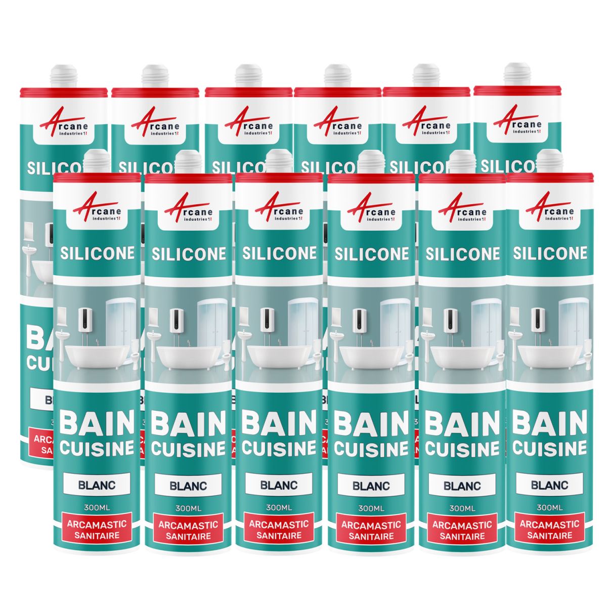 | Libellé | Mastic Silicone pour joints étanchéité douche, salle de bain, cuisine - ARCAMASTIC SANITAIRE Blanc - 300 ml x 12 - ARCANE INDUSTRIES |