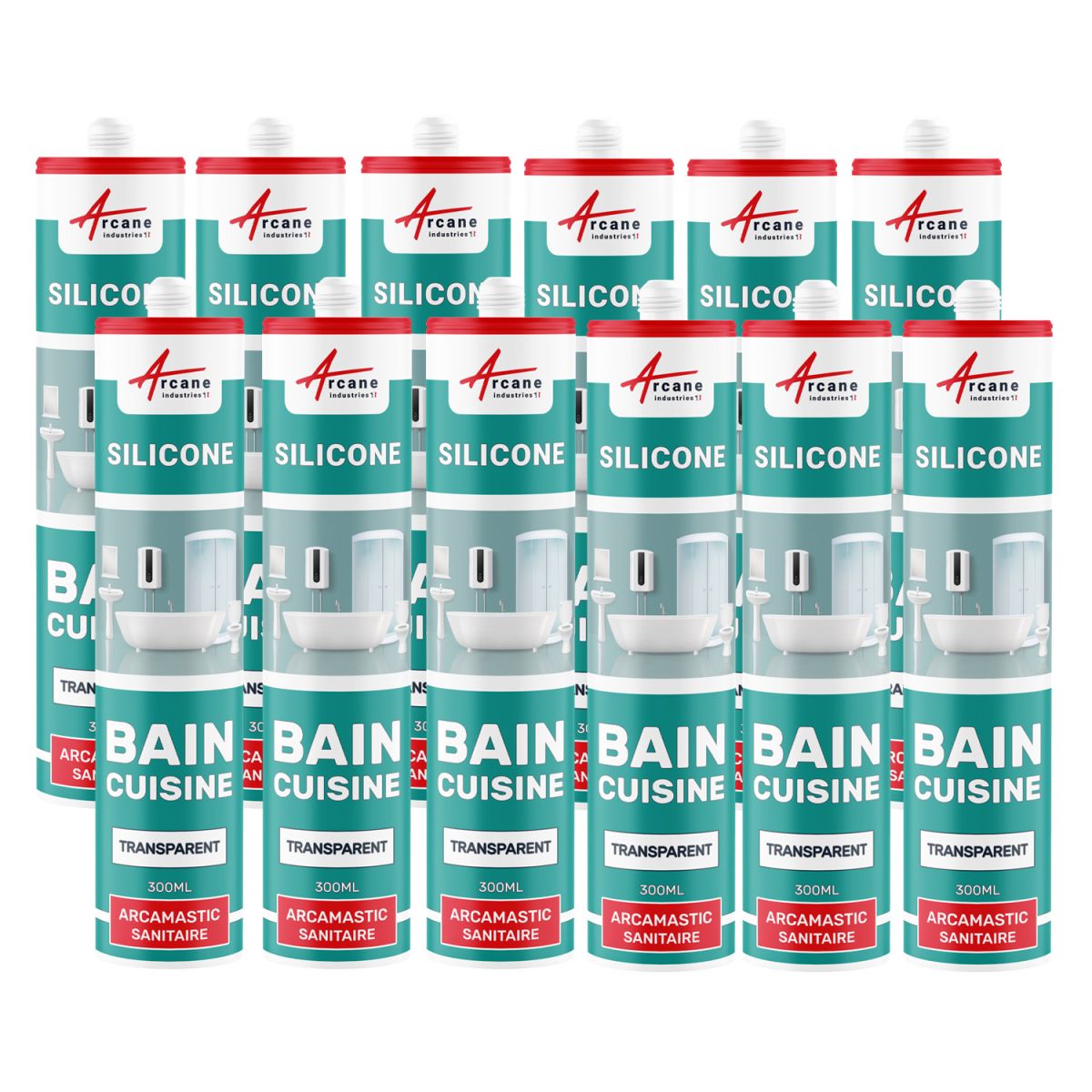 | Libellé | Mastic Silicone pour joints étanchéité douche, salle de bain, cuisine - ARCAMASTIC SANITAIRE Transparent - 300 ml x 12 - ARCANE INDUSTRIES |