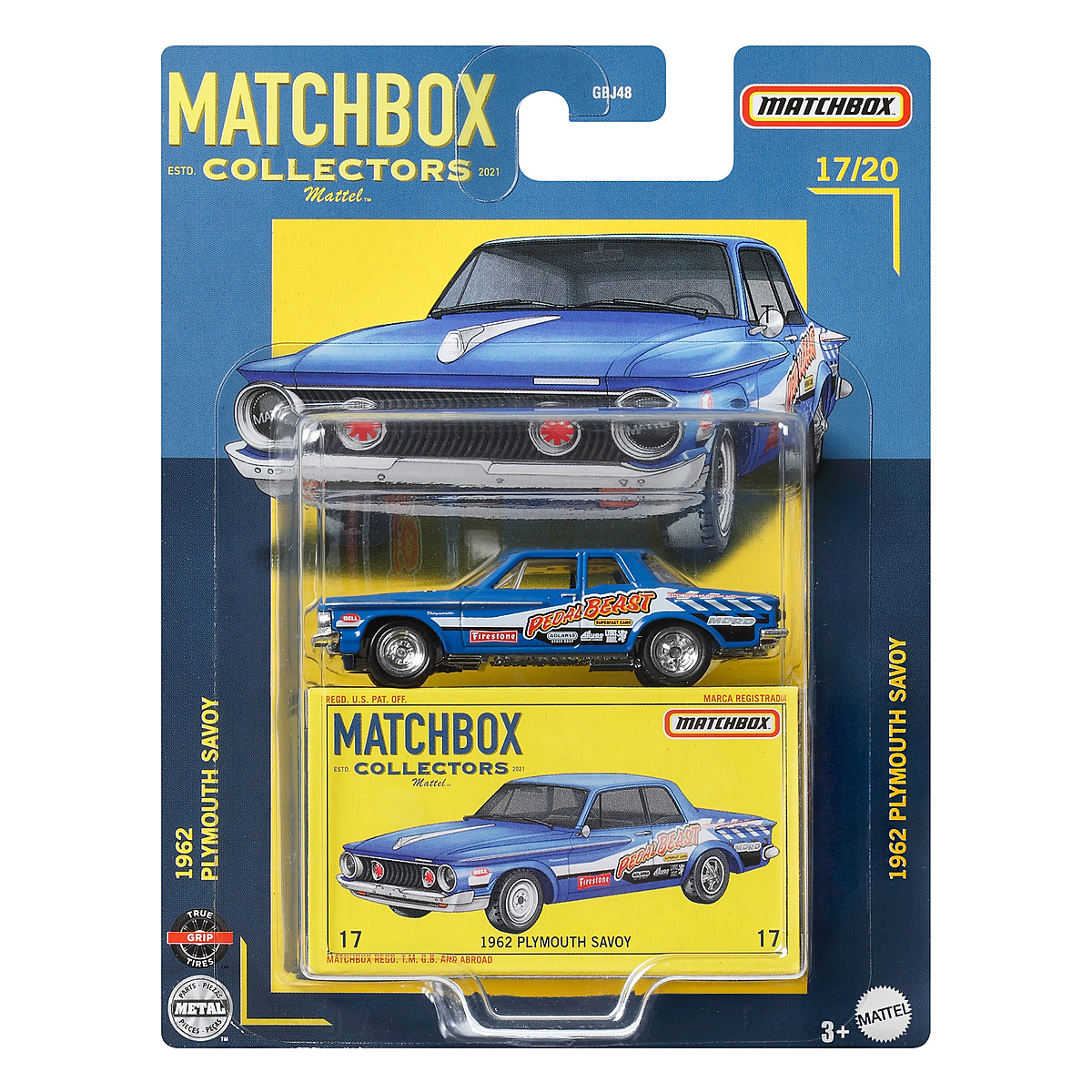 Les véhicules premium Matchbox offrent la plus grande qualité possible en matière de voitures classiques à l’échelle 1/64. Chaque véhicule arbore des décorations authentiques et remarquables et des roues fonctionnelles avec pneus imitation gomme. Certains modèles possèdent des éléments mobiles, comme des portières qui s’ouvrent et se ferment, ce qui les rend uniques, que ce soit pour les exposer ou jouer. Les amateurs de voitures de 3 ans et plus peuvent tous les collectionner. Articles vendus séparément. Certains produits peuvent ne pas être commercialisés. Non compatible avec certains coffrets Matchbox. Les couleurs et les décorations peuvent varier.