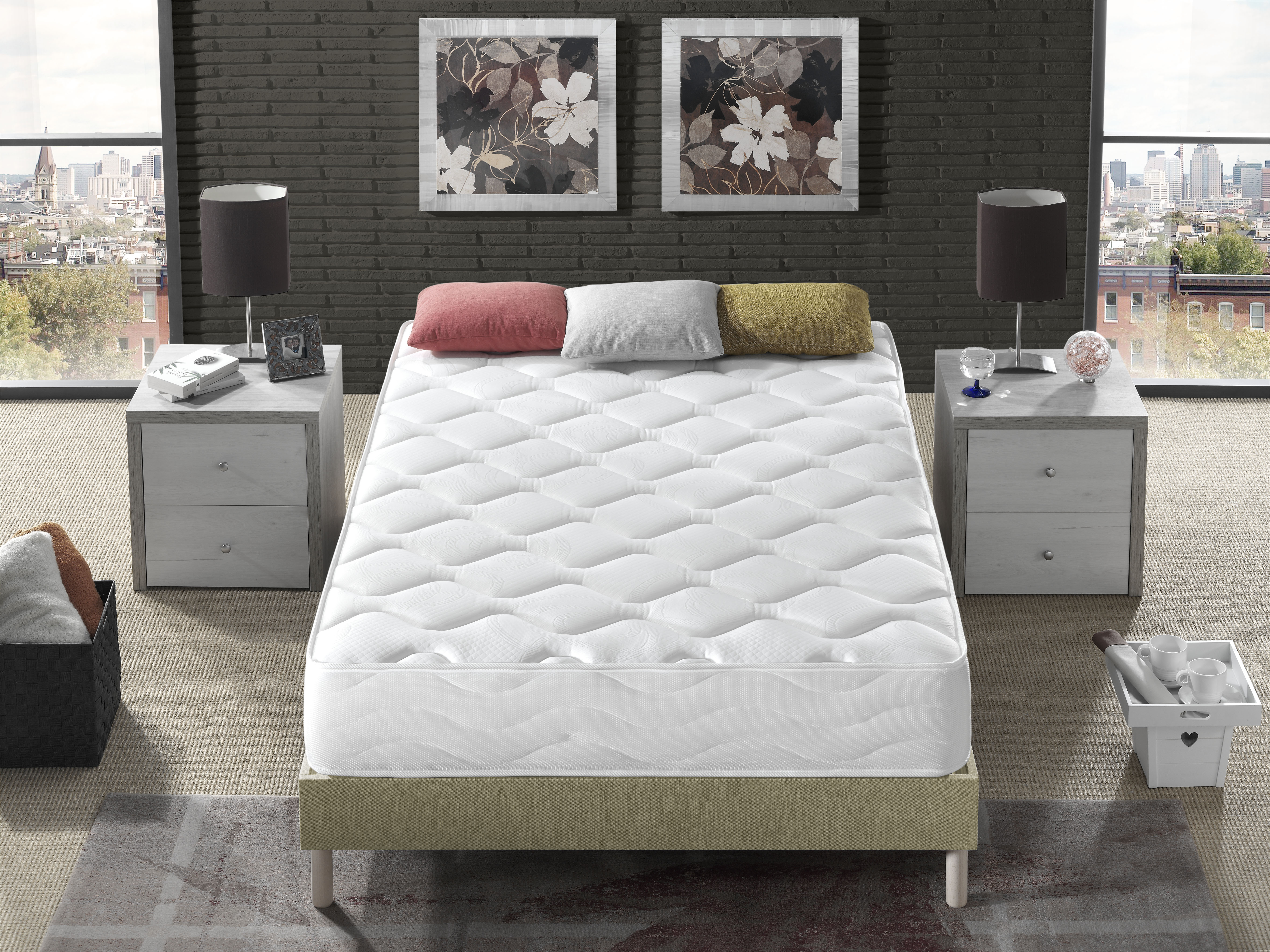 Dagostino Home présente l'incroyable matelas "Firenza", ce matelas de 150x200 d'une Esthétique Parfaite, d'une Fermeté Haute, d'une Respirabilité/Aération et Durabilité Maximale a été créé pour un niveau de confort optimal pour les Personnes qui souffrent du dos. Il est livré avec 8 ans de garantie et 30 nuits d'essai (satisfait ou remboursé, sans engagement!). C'est un matelas de 25 cm de hauteur avec 7 Zones de Confort qui s'adaptent à votre corps et garantissent le soutien de toutes les parties de votre corps. Il possède aussi une très bonne Indépendance de Couchage pour ne pas ressentir les mouvements de l'autre. Nous proposons des produits fabriqués à partir de matériaux de haute qualité et aux finitions soignées. Vous trouverez dans le matelas Firenza, uniquement des matériaux de Haute Qualité d'Aération Maximale et de Durabilité Optimal grâce à sa tri-technologies.Son Noyau en Mousse HR de 20 cm est de 28kg/m3 de Haute Densité vous garantissent un niveau de Confort Optimal Ferme et Robuste Dans le Temps, sa Couche de Confort de 5 cm de Mémoire de Forme vous fournira une excellente Sensation de Couchage avec un Accueil et Soutien Ferme. Ses Fibres Thermorégulatrices s'adapterons à la température de votre corps. Ce matelas Non Déhoussable est un produit Réversible, avec Double Face spécial pour les mois d'été/hiver. La Face d'Hiver a un tissu stretch jacquard qui vous tient chaud quand les températures sont basses. La face d'Été dispose d'un tissu 3D avec une Respirabilité maximale qui empêche l'accumulation de chaleur.