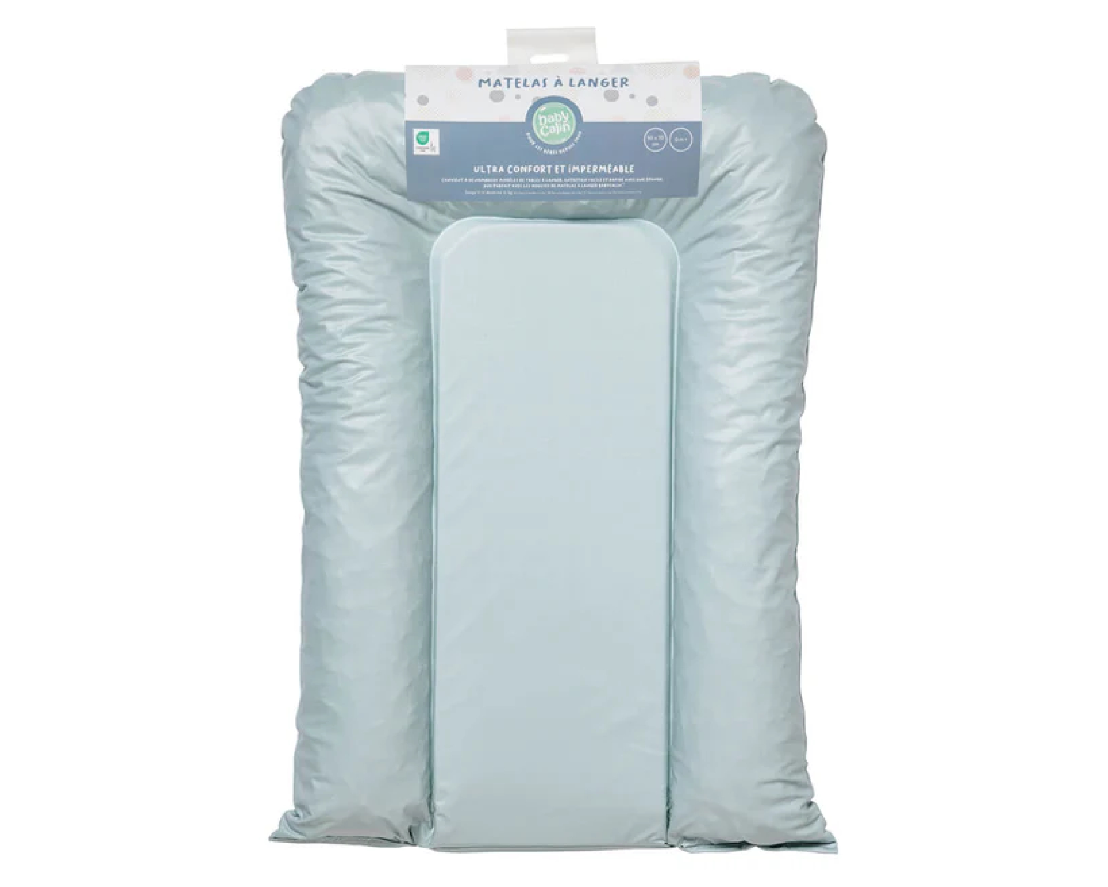 Matelas à langer Flocons uni couleur Bleu Vert de Babycalin. Une couleur douce et intemporelle qui trouvera facilement sa place dans la maison. Matelas à langer aux formes arrondies pour un confort absolu et aux bords rehaussés pour plus de sécurité. Sa dimension 50x70 cm convient à de nombreux modèles de tables à langer. A la fois moelleux et imperméable il sera parfait pour le change de Bébé.