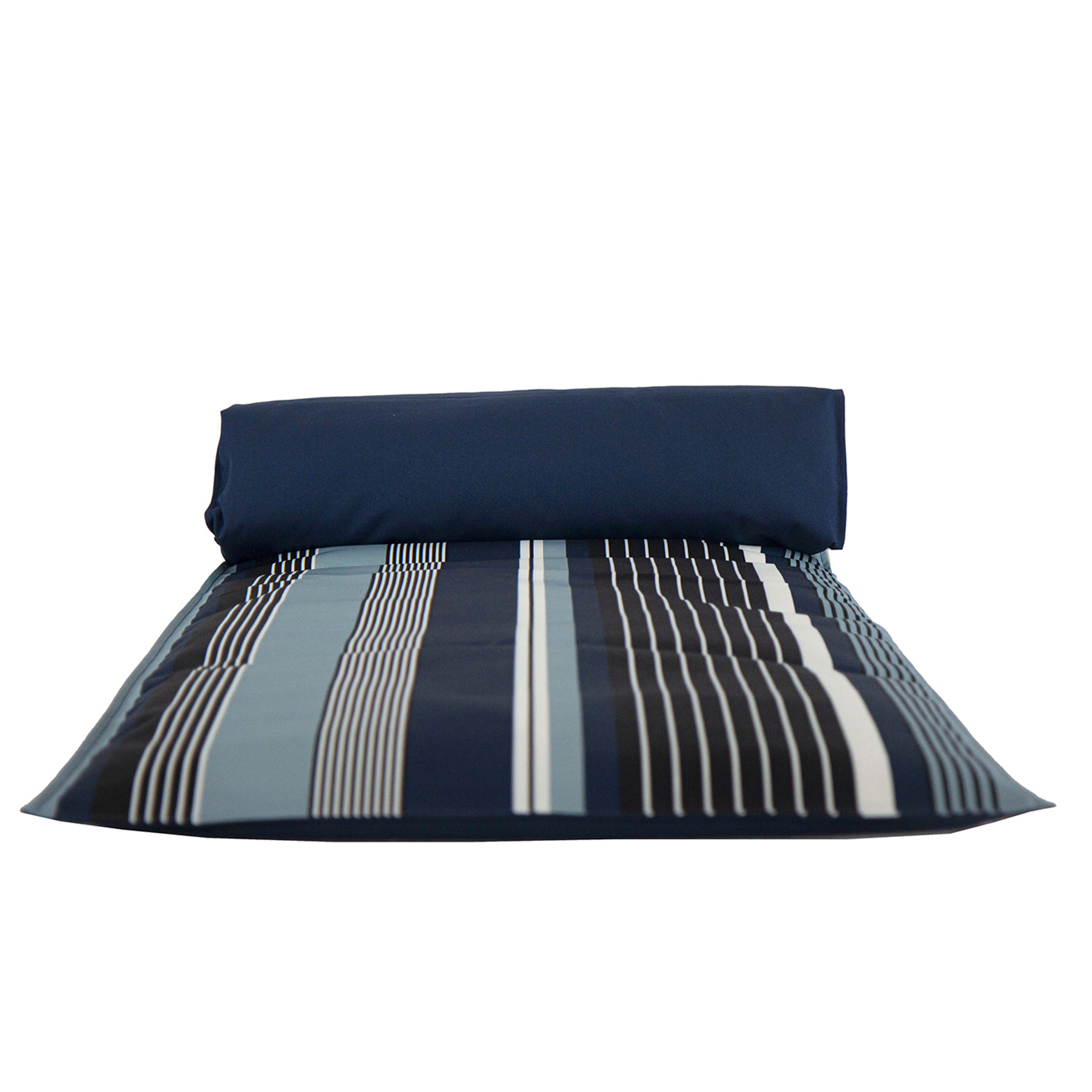 Esprit contemporain avec ce matelas bain de soleil biface qui apportera un style graphique à votre transat. Le recto est fait d'un jeu de rayures entrecoupé d'un camaieu de coloris tandis que le verso est uni. Celui-ci vous assure un confort optimal avec une texture douce et agréable au toucher. Une finition déperlante est ajoutée à ce tissu ce qui permettra de les laisser à l'extérieur. Idéal il ne prend pas de place car celui-ci est fait d'une housse et d'un matelas séparé, vous n'avez plus qu'à le housser. Lavable en machine à 30°C. D'autres articles assortis sont disponibles sur notre site.