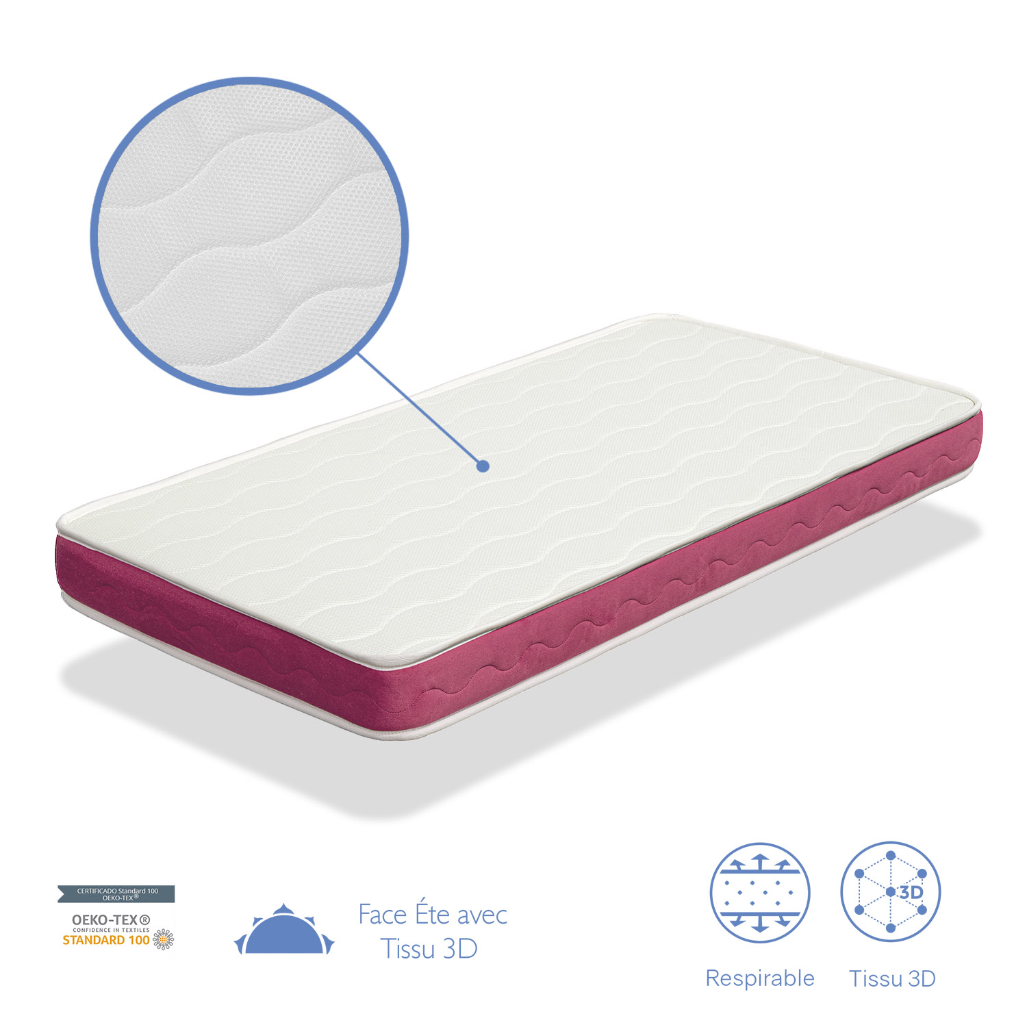 Confort et fermeté. Son noyau en mousse perforée offre l'élasticité idéale pour maintenir une posture et un alignement corrects du dos de votre bébé. Grâce à son noyau à cellules ouvertes, il élimine la chaleur et l’humidité et réduit les poches de CO2 qui se produisent lorsque notre bébé dort.