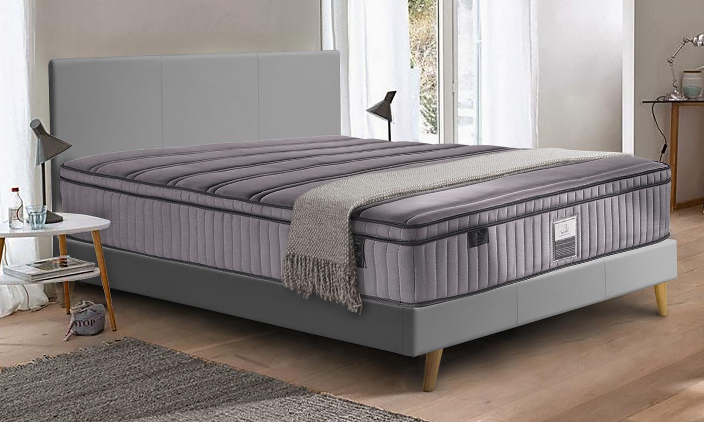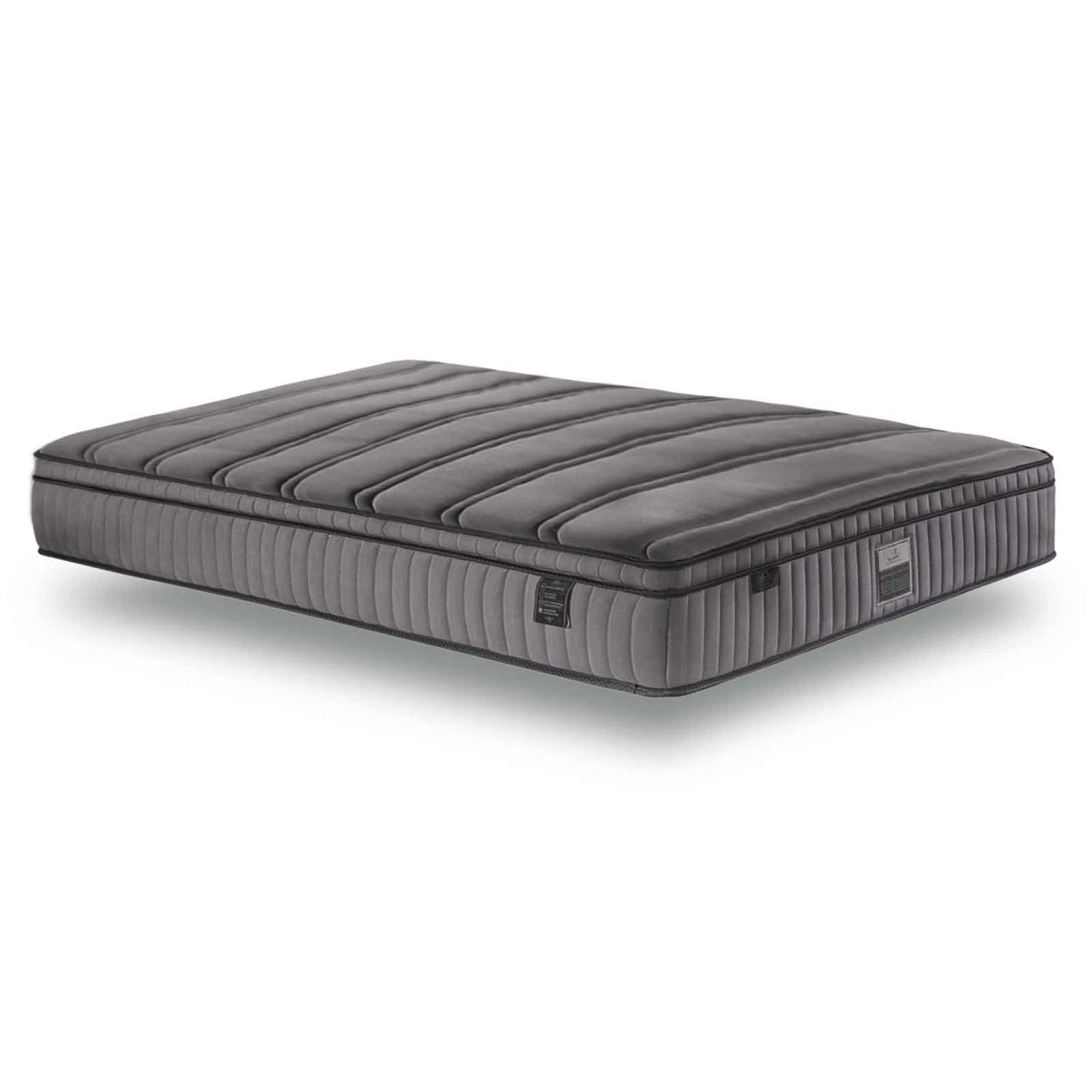 | Garnissage | 1 cm de latex 60 kg/m3, 100% organique, 1 cm de mousse viscoélatique à mémoire de forme 50 kg/m3, 100% organique , 20 cm de ressorts ensachés emballés dans des poches individuelles en tissu non-tissé, dans un carénage de mousse Haute Résilience d’une épaisseur de 8 cm , 3 cm de mousse de maintien Haute Résilience 30 kg/m3 , 3 cm de mousse de maintien Haute Résilience 30 kg/m3 |