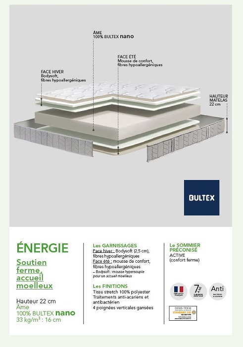 - Technologie : Ame mousse Bultex Nano 33kg/m3 : 16 cm