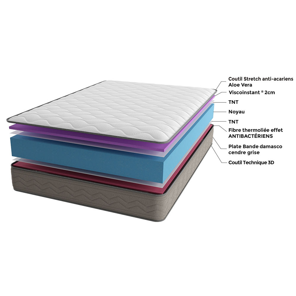 • Haute respirabilité : plus de fraîcheur et d'hygiène. Fermeté moyenne.