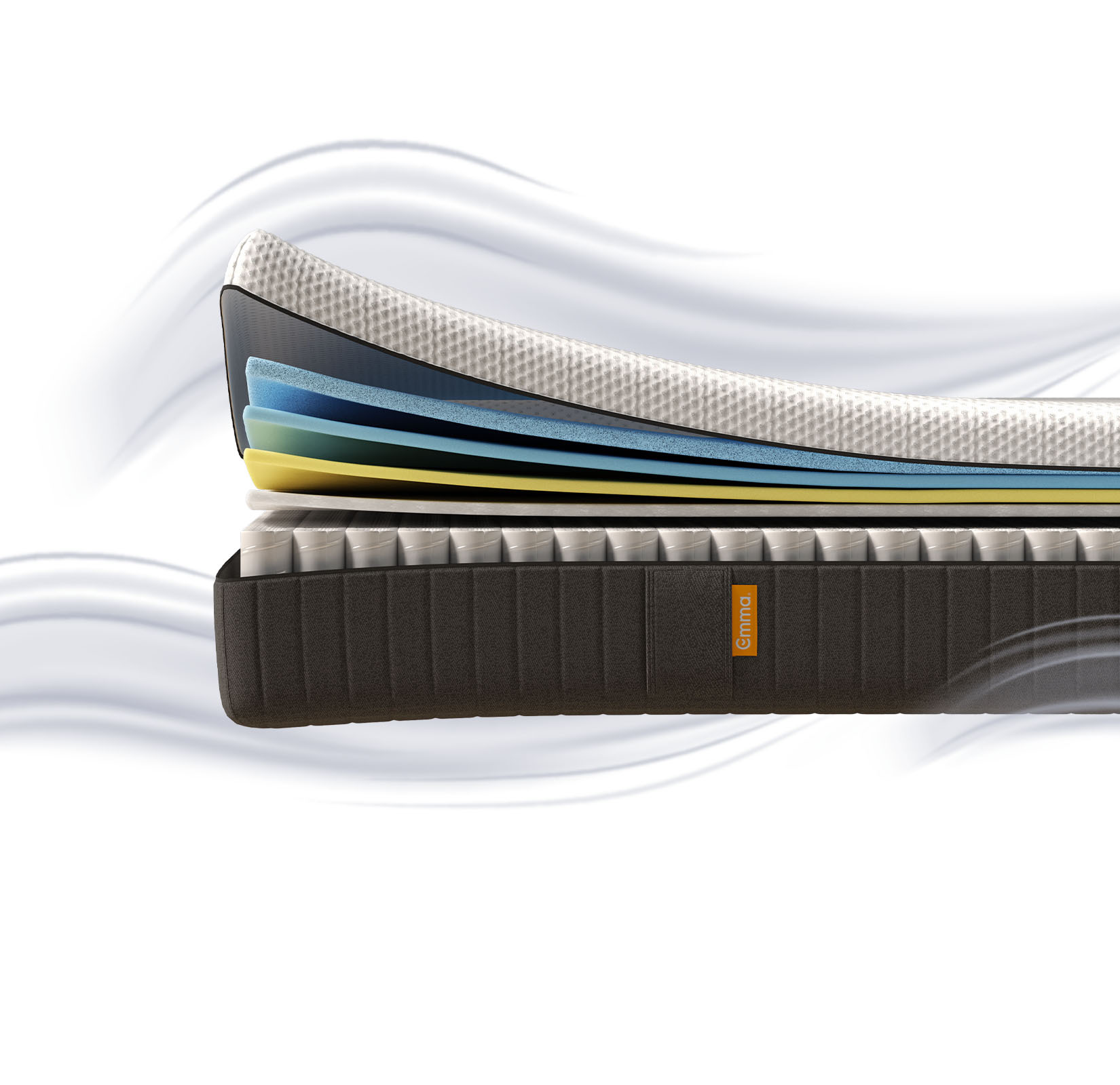 Le matelas Emma Original Pro est la version haute performance de notre célèbre technologie Original +. Plus épais, plus précis et doté de technologies exclusives, il a été conçu pour ceux qui ne veulent faire aucun compromis. Avec ses 27 cm d'épaisseur et ses 7 couches de confort, il offre une expérience de sommeil haut de gamme, alliant soutien ergonomique et régulation thermique active.