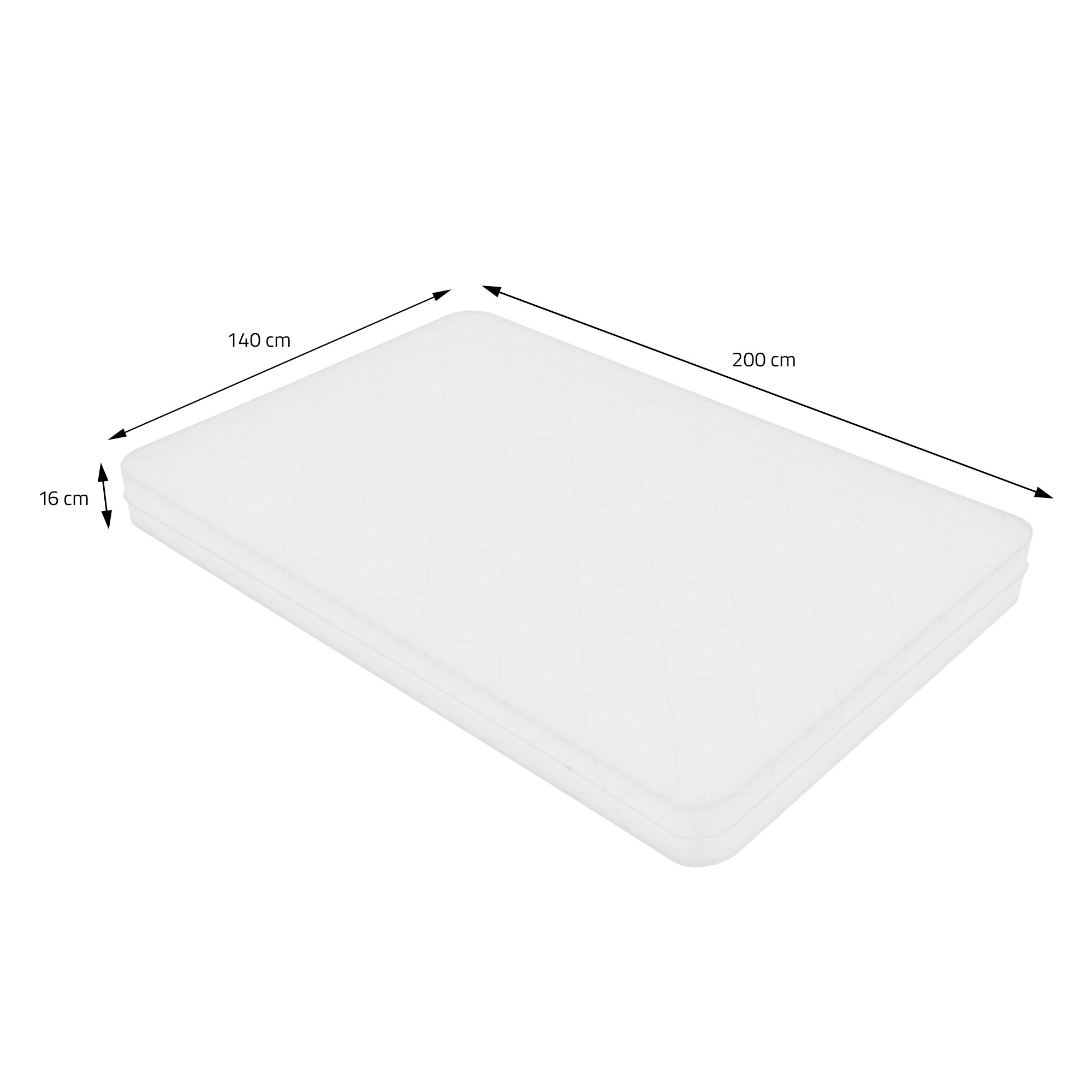 Le matelas en mousse confort de qualité supérieure convient également aux lits de 140 cm x 200 cm. Les deux côtés de couchage sont dotés de la même force de soutien, ce qui permet au matelas d'être tourné et retourné à volonté.