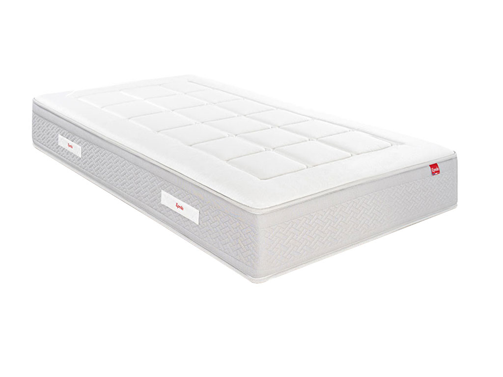 -Matelas Epeda Escapade : - Technologie : Suspension ressorts ensachés (651 pour la dimension 140x190cm) constitué à 90% d'acier recyclé et 10% non recyclé. - 3,5cm de mousse à mémoire de forme (densité 42 kg/m³) à cœur.- Ventilation : excellente- Zones : non- indépendance de couchage : excellente- Ceinture de mousse stabilisatrice- Hauteur totale : 26 cm- Double face de couchage : oui- Face hiver : mélange laines de France et Alpaga (100 g/m²) + mousse "Soft" (18mm, 18 kg/m³) + fibres hypoallergéniques (150 g/m², 80 % recyclées, 20 % non recyclées)- Face été : mousse "Soft" (8mm, 18 kg/m³) + fibres hypoallergéniques (150 g/m², 80 % recyclées, 20 % non recyclées)- Nature du garnissage du matelas: synthétique- Poignée(s) : oui- Composition coutil : face hiver : jacquard 100% viscose / face été : 100% polyester- Traitement coutil : non - sans traitement Biocide - Certifié OEKO-TEX Standard 100- Certifié NF Environnement - Livré roulé et compressé : non- Fabriqué en France- Garantie 5 ans matelas seul - 7 ans avec le sommier de la même marque