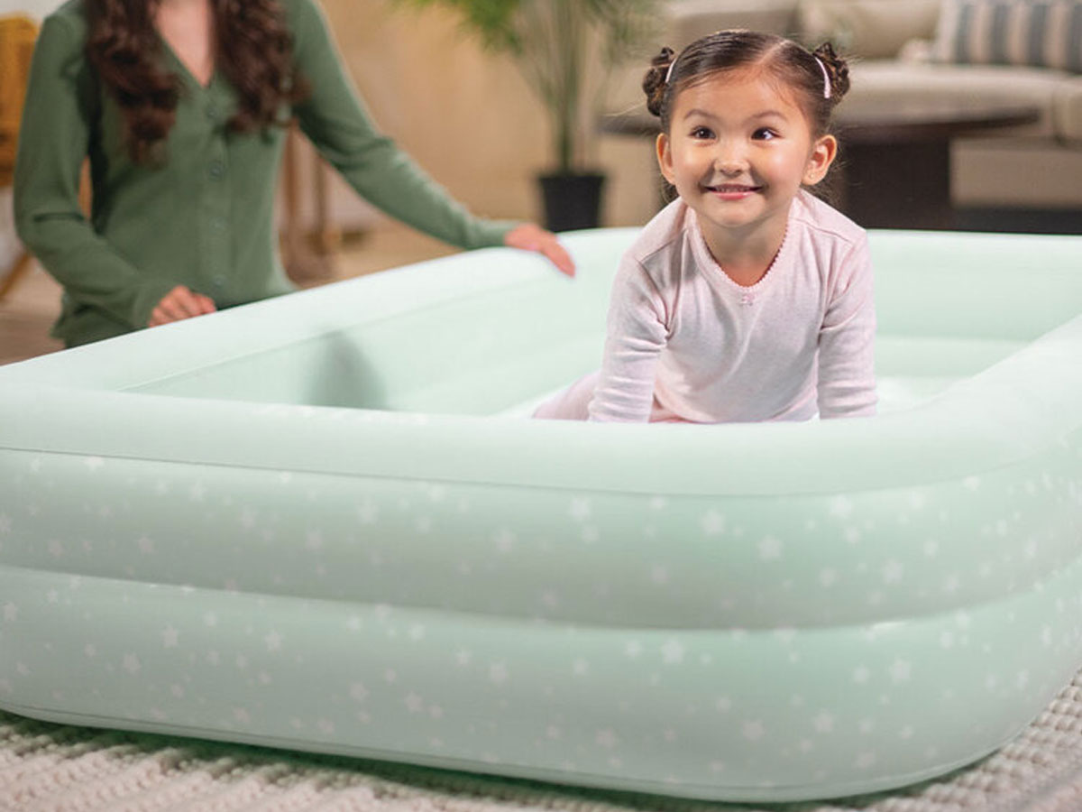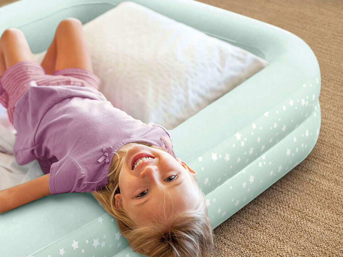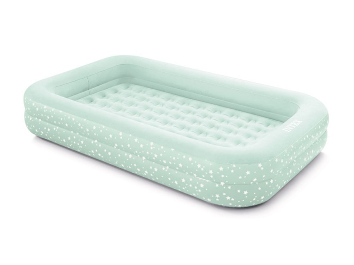 Matelas gonflable enfant 1 place + gonfleur - INTEX Le lit gonflable enfant Intex est un accessoire très pratique pour toutes vos sorties avec vos enfants. Vous pourrez l'utiliser en soirée chez des amis, pour que votre enfant puisse dormir confortablement ou même lors de visites dans votre famille. Ce lit gonflable enfant est de couleur vert d'eau, il possède un flocage doux pour plus de confort ! Pour vous faciliter son utilisation, il est livré avec un gonfleur et un sac de transport. Ce modèle se gonfle en 2 min seulement, votre enfant pourra se reposer dès qu'il le voudra. Ce lit gonflable enfant possède des rebords pour plus de sécurité, même un enfant en bas âge pourra y dormir en toute sécurité, sans risque de tomber ! Ce matelas gonflable pour enfant de la marque Intex est de couleur vert d'eau. Il est spécialement conçu pour les enfants âgés de 3 à 6 ans. Le matelas mesure 168 x 107 x 25 cm et est accompagné d'un gonfleur. Fabriqué en vinyle, il offre une surface confortable et sécurisée pour une seule personne. Utilisation Ce matelas gonflable enfant est facile à gonfler grâce au gonfleur électrique inclus, qui vous permettra de le gonfler en seulement quelques minutes. Une fois gonflé, il offrira un couchage confortable à votre enfant, avec son revêtement floqué qui lui donne une texture douce et agréable au toucher. Il peut être utilisé aussi bien à la maison que lors de déplacements en camping ou chez des amis. Entretien Pour garantir une durée de vie optimale à votre matelas gonflable enfant, il est important de le manipuler avec précaution et de le ranger correctement après chaque utilisation. En cas de salissures, il est recommandé de nettoyer le matelas à l'aide d'un chiffon doux et humide, sans utiliser de produits abrasifs ou chimiques. Il est également conseillé de ne pas exposer le matelas à des sources de chaleur ou à des rayons UV, pour éviter toute dégradation prématurée. Caractéristiques techniques Accueil:Moelleux Âge:3 à 6 ans Couleur:Vert d'eau Dimensions (L x l x H):168 x 107 x 25 cm Fiber Tech:Non Gamme:Enfant Garantie:Produit non garanti Largeur:107 cm Marque:INTEX Matière(s):Vinyle Nombre de places:1 place Soutien:Equilibré Temps de montage:3 min Type de gonfleur:Manuel Utilisation:Intérieur