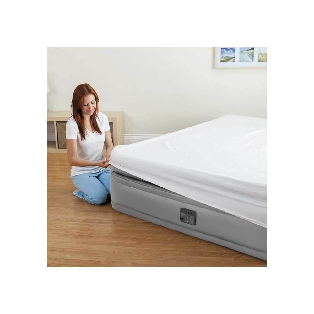 | Plus produit | Technologie Fiber Tech pour maintien et légèreté; gonfleur électrique intégré (220 V) pour gonflage/dégonflage rapide (~3 minutes); dessus floqué doux; hauteur 51 cm facilitant l'accès; double matelas permettant de border les draps; sac de rangement inclus. |