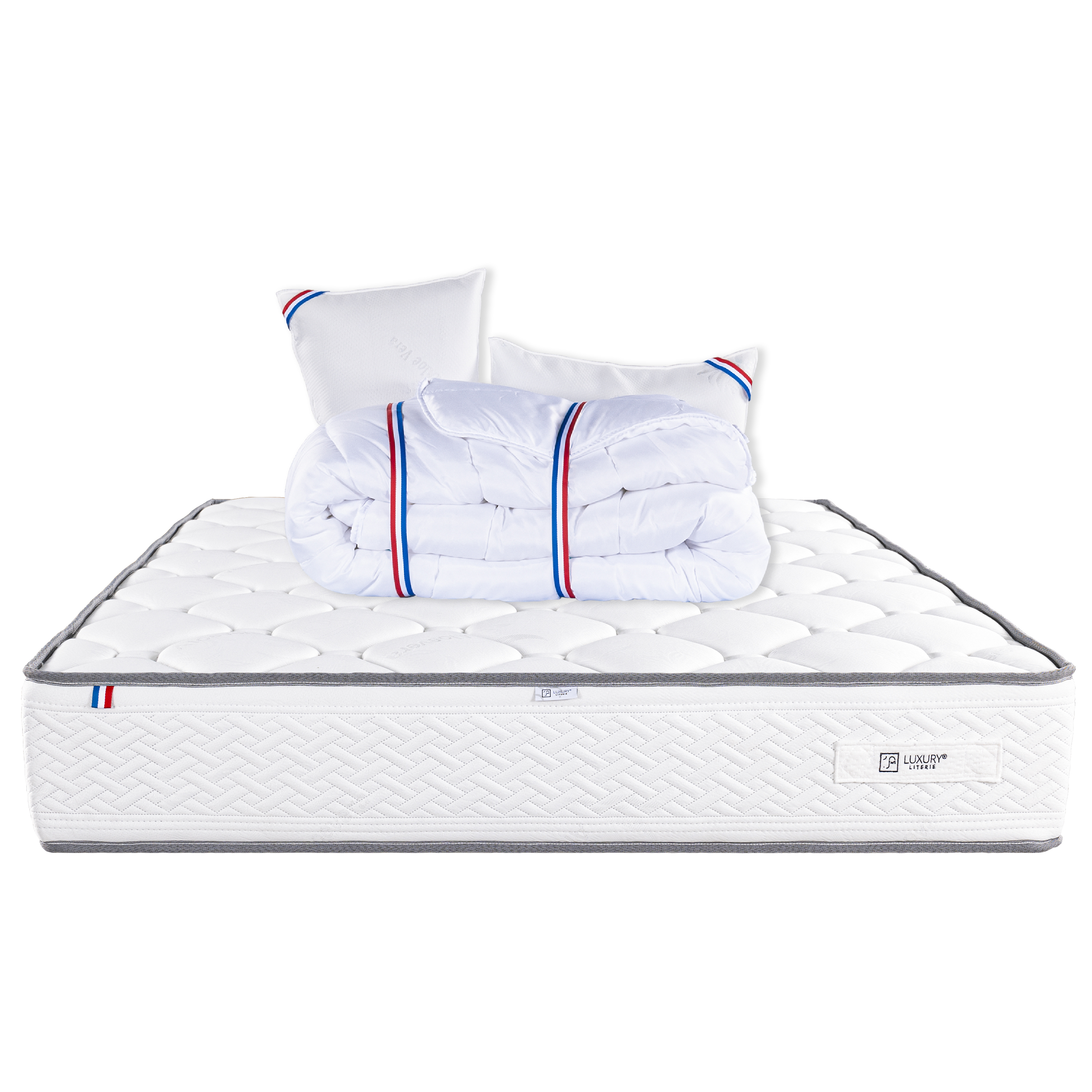 Ensemble matelas IRIS ferme 7/10, épaisseur 20cm + couette + oreillers