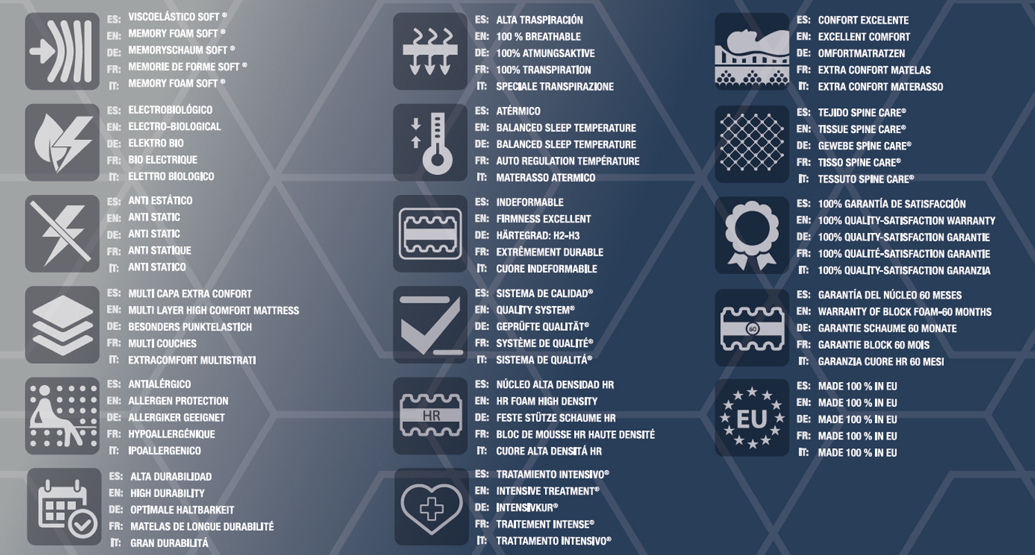 Noyau de mousse haute densité Excellent Plus HR avec 9 zones de repos pour soulager la pression des points sensibles.