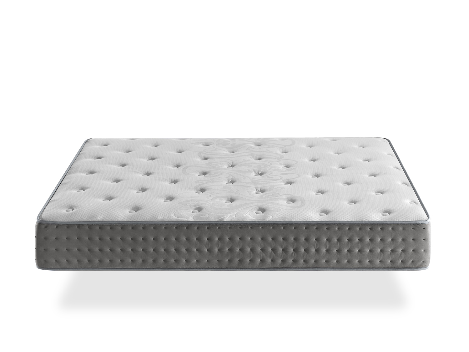 Enfin, nous entourons notre matelas d'un tissu grisâtre au toucher velours pour lui donner élégance et modernité.