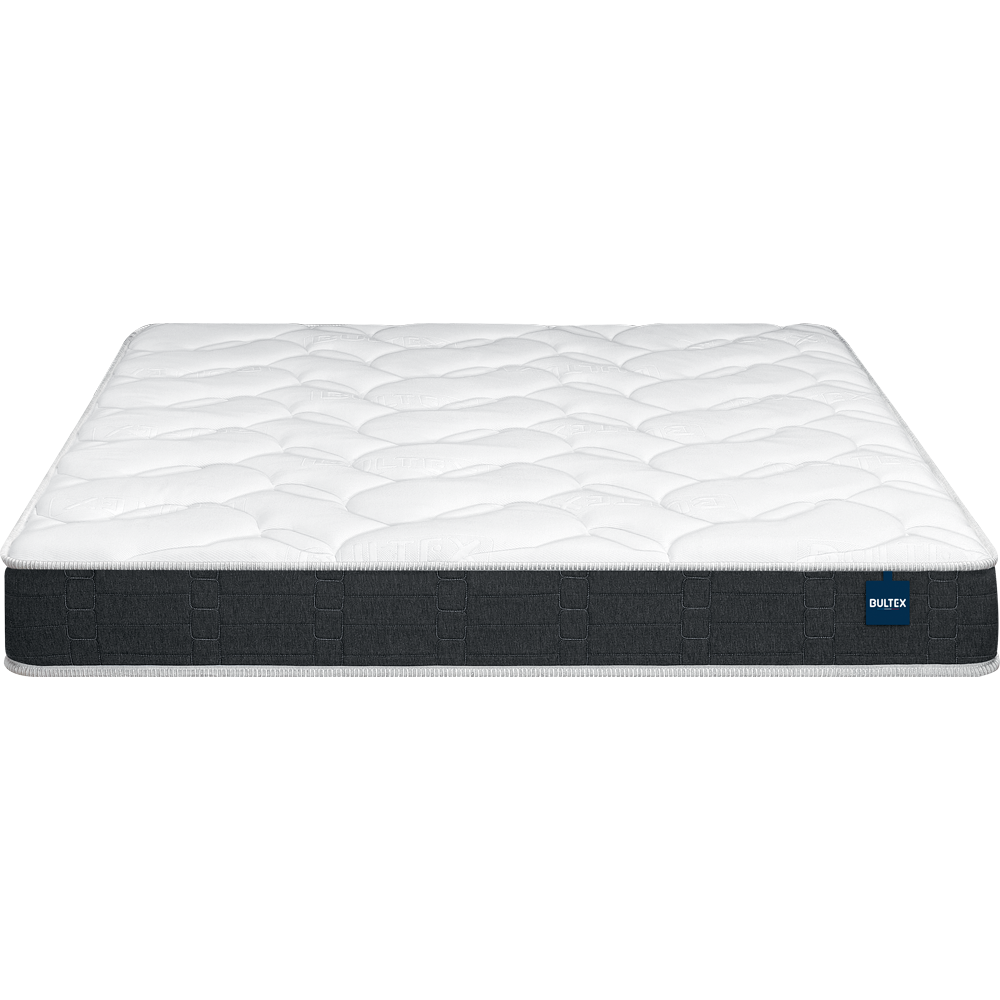 - Matelas Bultex Essential :- Technologie : 100% Mousse BULTEX nano- Densité : 33kg/m3- Hauteur âme : 15 cm- Hauteur totale : 20 cm- Fermeté : confort ferme- Double face de couchage : oui- Face hiver : mousse BodySoft 23kg/m3 + fibres hypoallergéniques- Face été : mousse de confort 14 kg/m3- Composition coutil: stretch 100% polyester- Traitement coutil : Certifié OEKO-TEX Standard 100- Fabriqué en France- Garantie 5 ans seul, allongée à 7 ans pour l'achat d'un sommier de la marque.