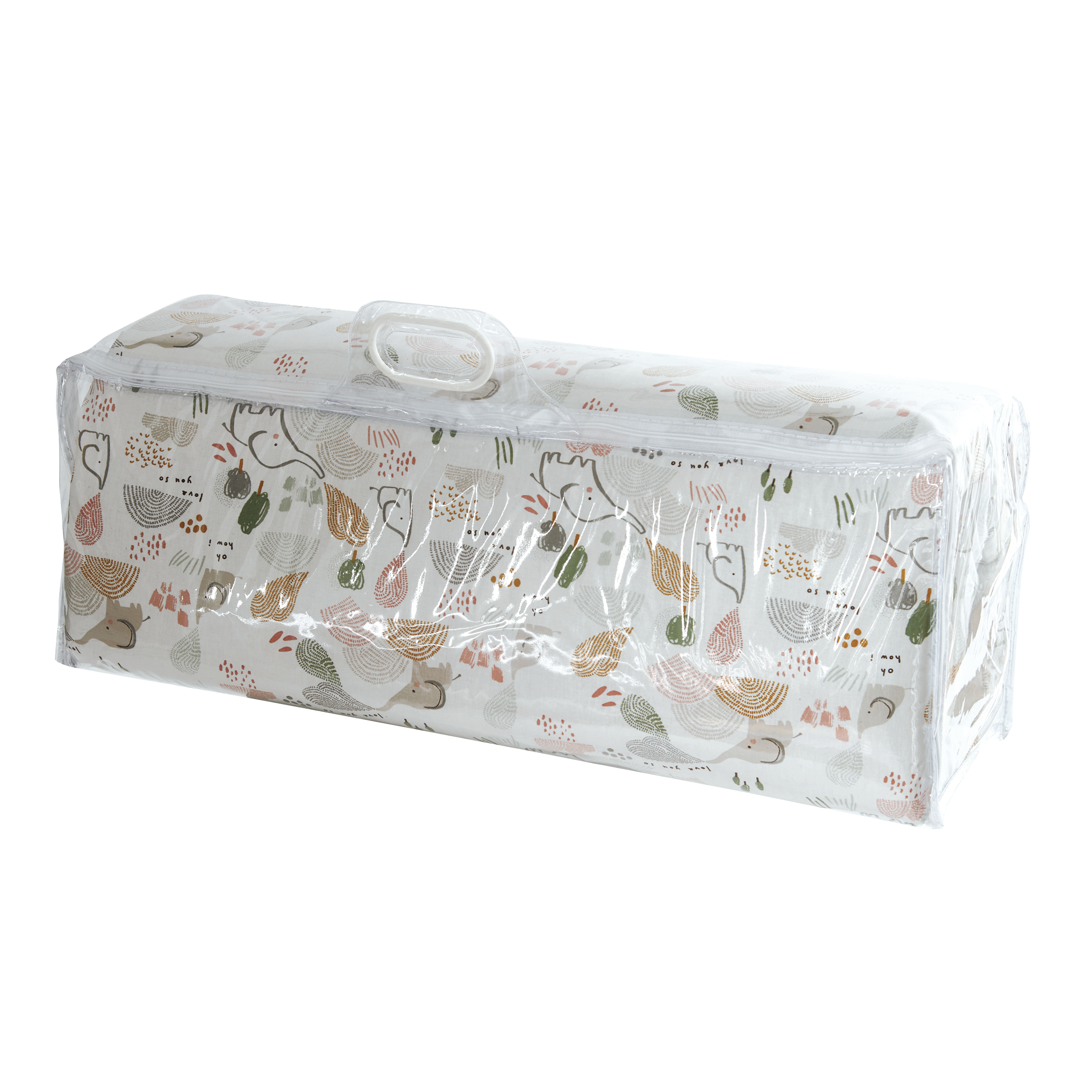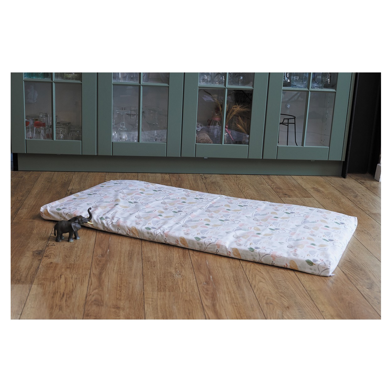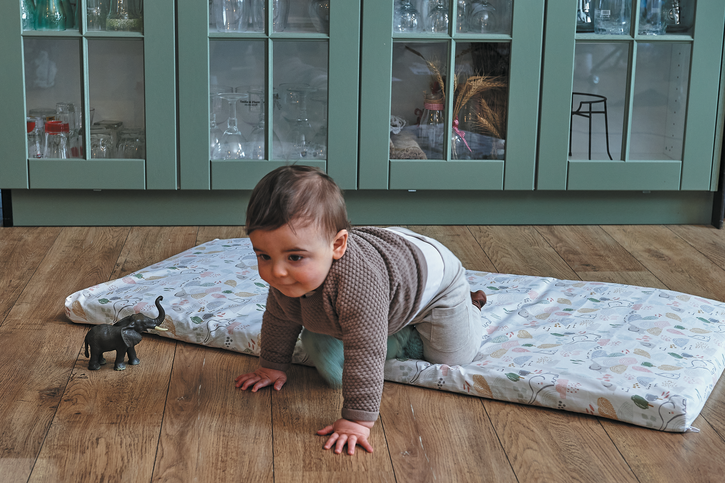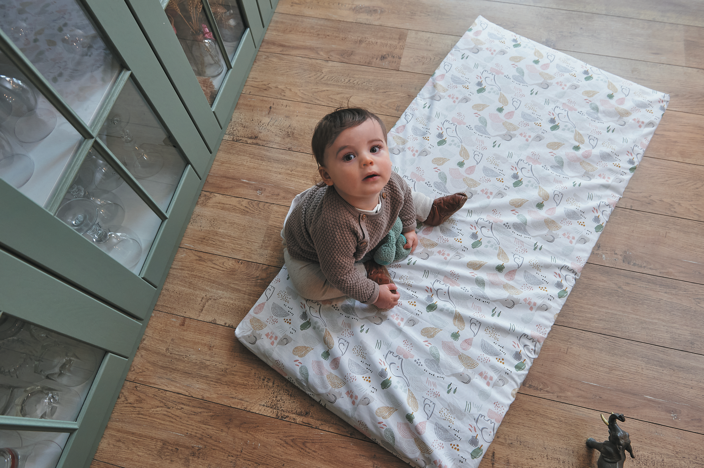 Matelas nomade idéal pour les déplacements Matelas d’appoint à positionner au sol ou dans un lit dur 60x120cm. Pratique : Une fois roulé, ne prend pas de place. Facilement transportable grâce à sa valisette à poignée. Dessous PVC : isolant et barrière entre le froid du sol et bébé. Malin : Peut être positionné au sol comme tapis de jeu d’appoint. Déhoussable Fabriqué en France