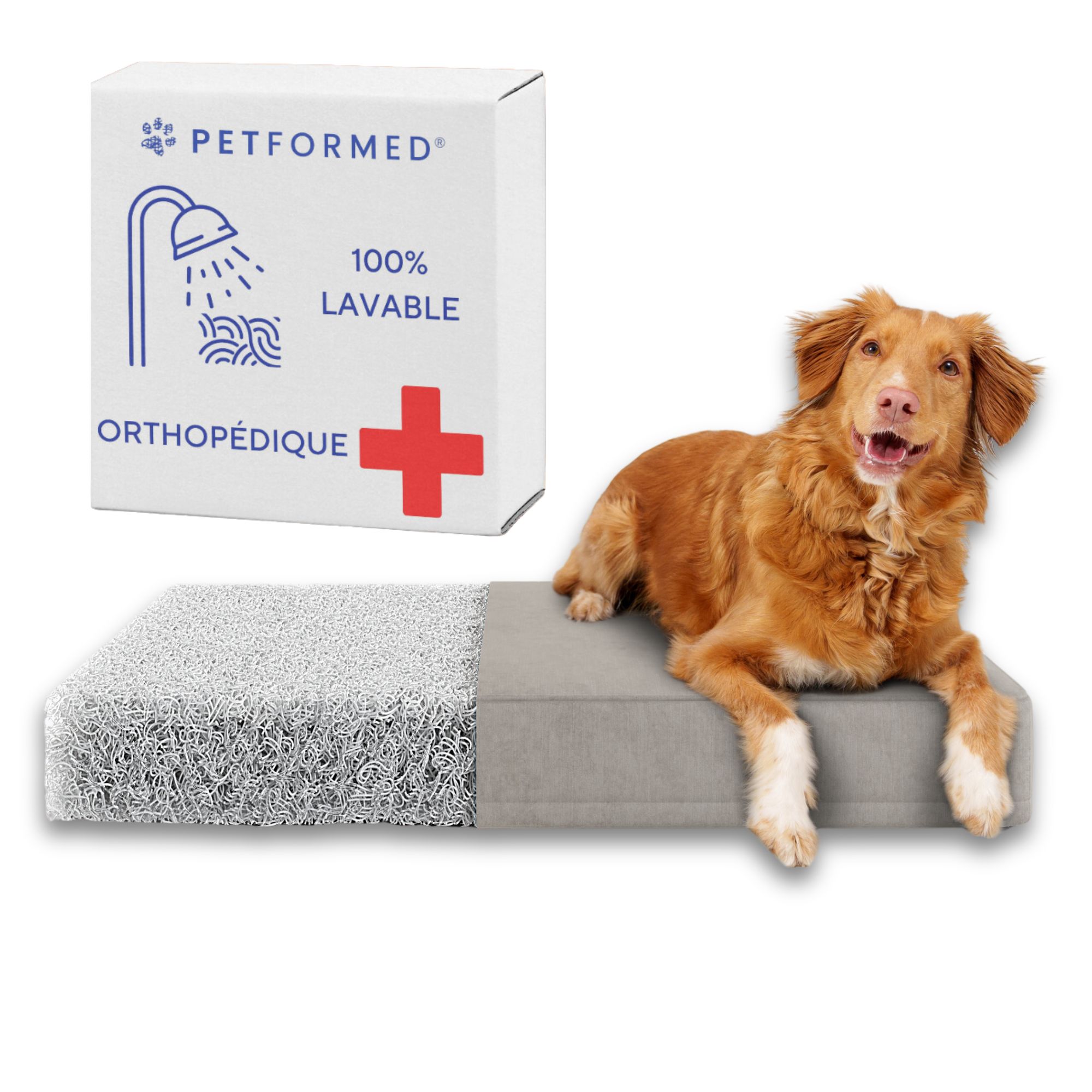 "- CONFORT POUR TON AMI À QUATRE MINES - Notre lit orthopédique pour chien avec sa structure innovante en oxymesh offre un confort ultime et des conditions de repos optimales. Ton chien ne mérite que le meilleur! - HYPOALLERGENE ET HYGIENIQUE - La structure en oxymesh empêche la prolifération des champignons et des moisissures. Notre matelas pour chien est hypoallergénique et entièrement lavable, afin que ton animal puisse toujours dormir dans un environnement propre. - CONFORT SUR MESURE - La dureté des coussins pour chiens est parfaitement adaptée à la taille et au poids de ton chien. Les articulations sont ainsi soulagées de manière optimale et la colonne vertébrale est maintenue dans une position saine. - MATÉRIAUX DE HAUTE QUALITÉ - Le coussin pour chien en polyester velouté (330g/m2) au tissage dense et agréable est résistant et agréable au toucher. Le rembourrage est composé à 100% d'oxymesh avec des ions d'argent pour une hygiène particulière. - DESIGN STYLE, ENTRETIEN FACILE - Le matelas pour chien en diverses couleurs s'intègre parfaitement dans chaque maison. Grâce à ses propriétés hydrofuges, notre lit pour chien est facile à nettoyer. Le matelas complet peut être lavé sans problème. Tu bénéficies de 7 avantages en 1 produit! 1. Le matelas empêche un affaissement trop important des articulations, réduit la cause et les symptômes des douleurs articulaires. 2. La housse est lavable en machine. 3. Le garnissage du matelas peut être nettoyé sans problème sous la douche, cela ne prend que quelques minutes! 4. Une meilleure perméabilité à l'air ! Le matelas respire même 349,25% de plus que les matelas en mousse à mémoire de forme. 5. Influence positive sur la qualité du sommeil ! Il évacue la température du corps du chien 562,50% plus rapidement que les matelas en mousse (Memory Foam). 6. Peut durer jusqu'à cinq fois plus longtemps qu'un matelas normal! Grâce à sa structure tissée serrée, le tissu est plus difficile à mordre par les chiens. 7. Un matériau qui résiste même aux griffes les plus acérées. La structure unique soulage les douleurs articulaires - Le lit pour chien de Petformed offre un soutien prouvé et a été spécialement conçu pour soulager les douleurs articulaires. L'OxyMesh (le garnissage de notre matelas) est 1040 % plus réfléchissant que la mousse normale. - Les articulations de votre chien ne s'enfonceront pas profondément dans le lit, ce qui est un facteur sérieux à l'origine des problèmes articulaires - un lit trop mou qui manque de soutien. - La structure OxyMesh offre un meilleur soutien. Lorsque vous choisissez un lit, tenez compte de ce qui suit : Est-il bon pour la santé de mon chien? - OxyMesh est composé à 90% d'air. - Les vétérinaires s'accordent à dire que les chiens dorment mieux et plus profondément à des températures plus fraîches - un lit trop chaud peut nuire à la qualité du sommeil du chien. - Le matériau OxyMesh reste frais toute la nuit et prend soin de votre chien. Lorsque vous choisissez un lit, tenez compte des éléments suivants: Est-il facile à nettoyer? - OxyMesh est hypoallergénique et n'absorbe pas l'humidité. - Alors que la mousse ordinaire absorbe l'humidité, ce qui peut entraîner la prolifération de bactéries et de moisissures, le matériau OxyMesh reste exempt de parasites. Pour répondre aux attentes des clients les plus exigeants : - Nous avons essayé 72 tissus pour sélectionner une housse avec un revêtement hydrophobe. - Nous avons veillé à ce que la housse soit résistante aux rayures, qu'elle résiste aux dents des chiens tout en étant agréable au toucher. - La structure et la dureté uniques du matelas lui confèrent une longue durée de vie."