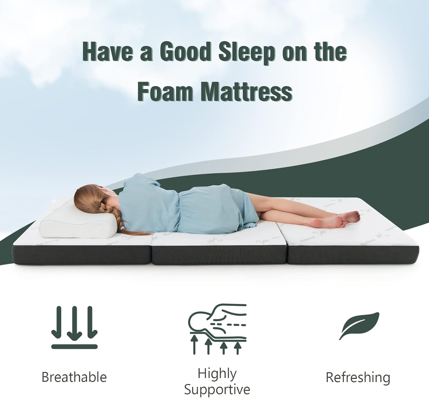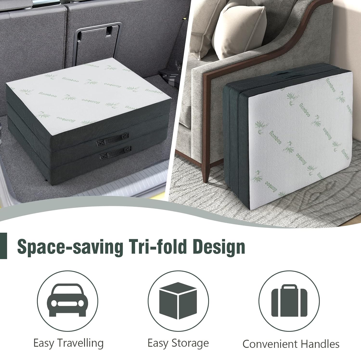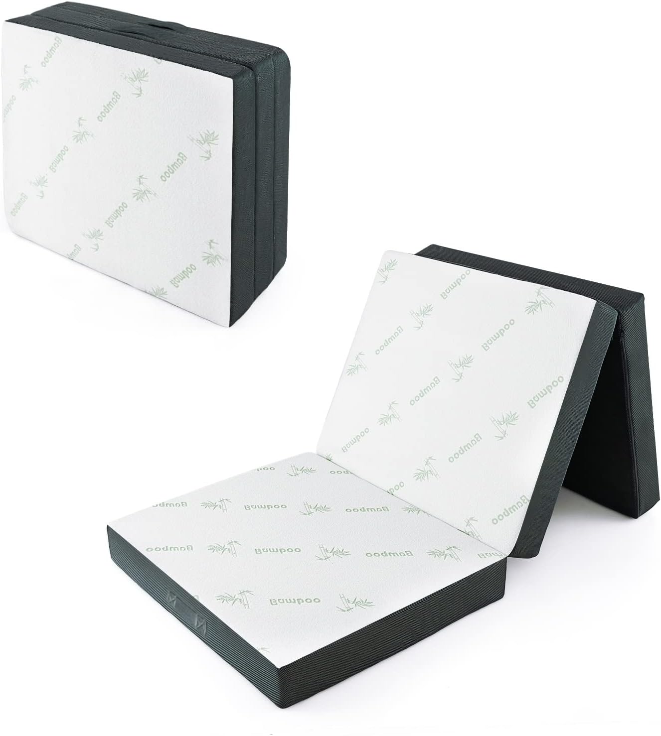 Matelas pliable d’invité en mousse matelas d’appoint à 3 plis avec surface en fibre de bambou &2 poignées