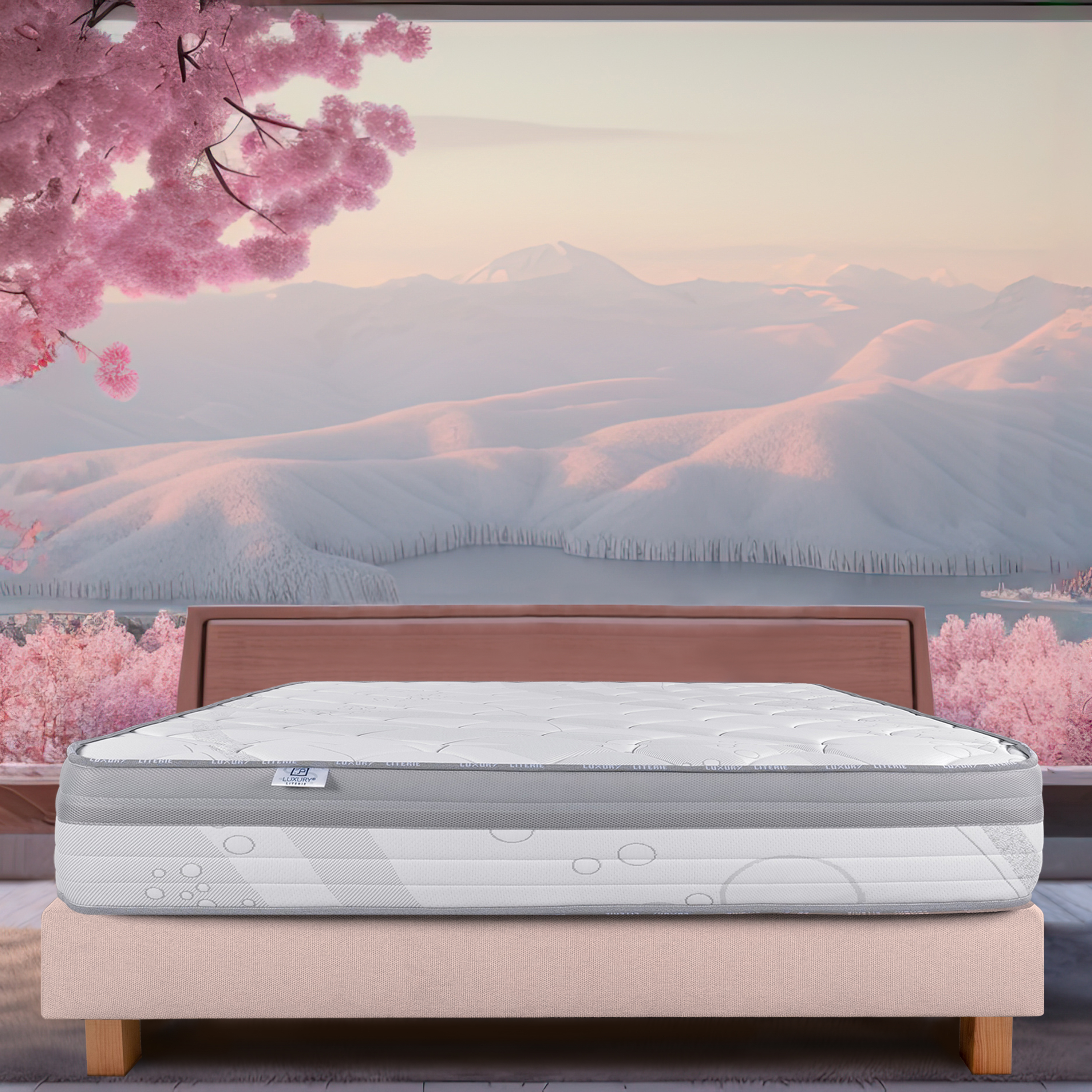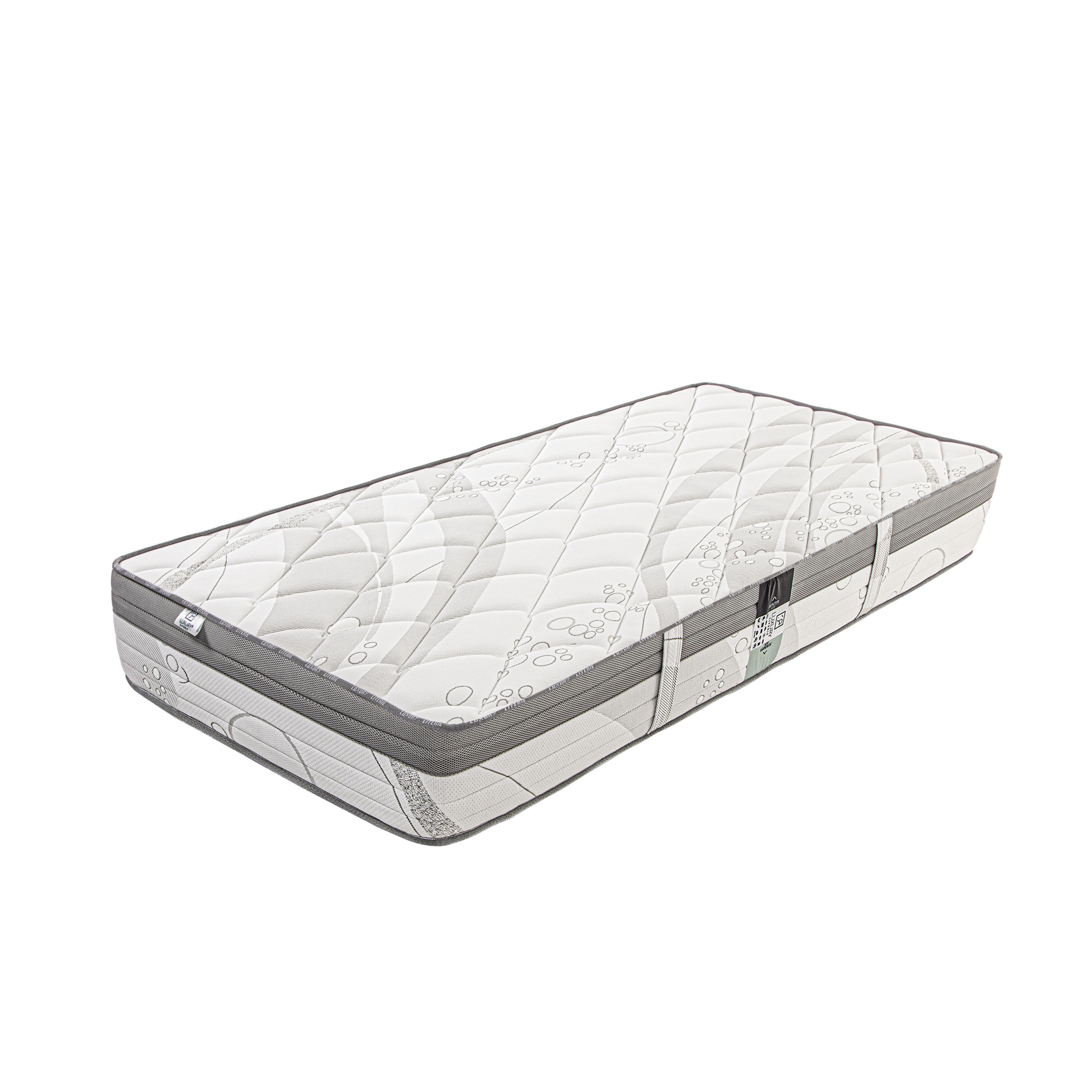 ErgoAeroFoam100 Cette mousse est l'épine dorsale du soutien de ce matelas. Elle a été conçue avec une structure à cellules ouvertes qui offre un soutien ferme et durable, garantissant une position correcte pendant le sommeil. Cette mousse est capable de répartir uniformément le poids de votre corps, de maintenir votre colonne vertébrale alignée et de réduire les risques de douleurs dorsales.