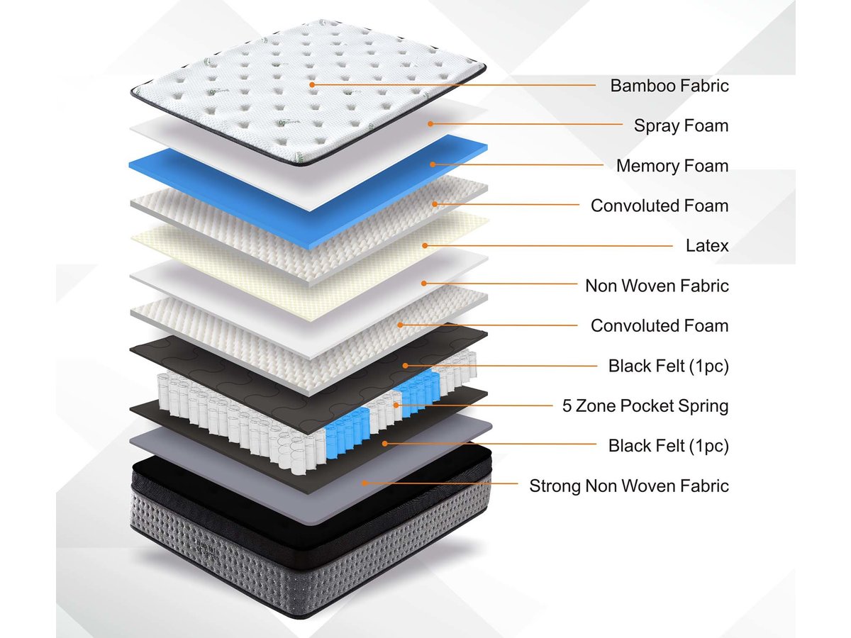Descriptif:Matelas à ressorts ensachés Taille optimale après 7 jours Poids maximum supporté : 100 kg.Dimensions du matelas:140 x 190 x 34 cm.Ame:Ressorts ensachés - 2.0+1.9+2.0+1.9.2.0 mm au milieu 2.2 mm sur le reste de la surface Taille des ressorts 26 cm Quantité : 660.Fermeté Confort:Equilibré.Coutil:Polyester.Garnissage:Mousse à mémoire de forme , densité 50kg/m3 + mousse endulée , densité 20kg/m3 + Latex.Accueil, Premier contact:Equilibré.Face de couchage:1 face de couchage.Poids:37.5 kg.taille:140 x 190 cm.Epaisseur:34 cm.Colisage:1 colis : - 1,46 x 0,34 x 0,34 m, 39,5 kg.