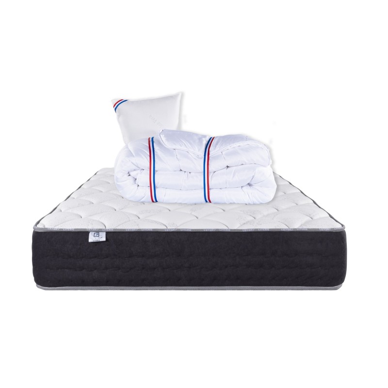 Ensemble matelas <> ferme 7/10, épaisseur 27cm + couette + oreiller