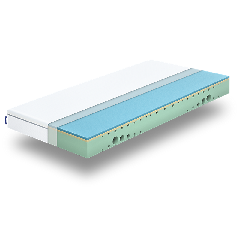Mousse Airgocell, mousse régulatrice de pression et mousse de soutien adaptée aux différentes zones du corps et un alignement parfait de la colonne vertébrale.