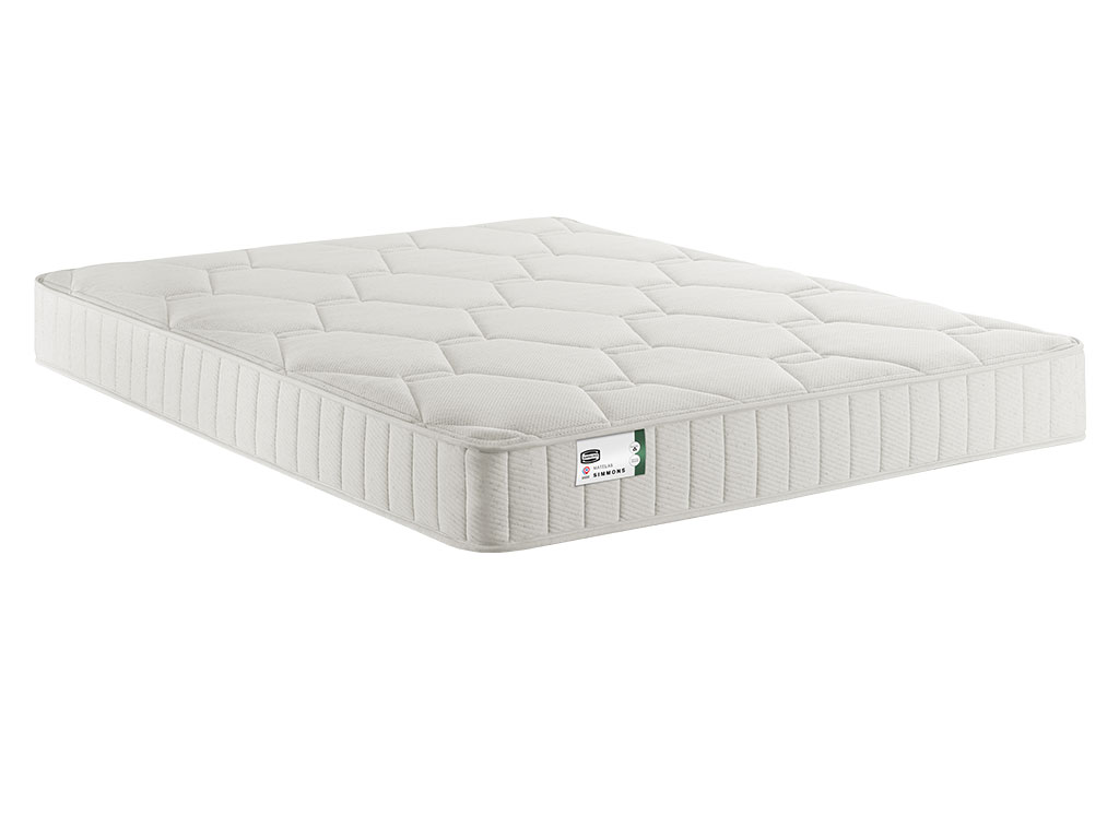 - Matelas Simmons First FR.1- Technologie : Suspension ressorts ensachés Sensoft Evolution® (600 pour la dimension 140x190cm - 736 pour la dimension 160x200cm) constitué à 90% d'alliage de fer recyclé.- Ventilation : excellente- Zones : non- Indépendance de couchage : excellente- Cadres lamettes en acier- Hauteur totale : 22 cm- Double face de couchage : non- Système NO-Flip- Face de couchage : Ouate (300gr/m²) + Fibres de polyester recyclées (350gr/m²) + Lin (200 gr/m²)- Face technique : Fibres de polyester recyclées (320g/m²) + Coutil 3D aéré 100% polyester- Nature du garnissage du matelas: naturel et synthétique- Composition coutil: Tissu 3D aéré Tript'Air : 95% polyester et 5% lin- Traitement coutil : non- Poignée(s) : non- Livré roulé et compressé : non- Fabriqué en France- Garantie 5 ans