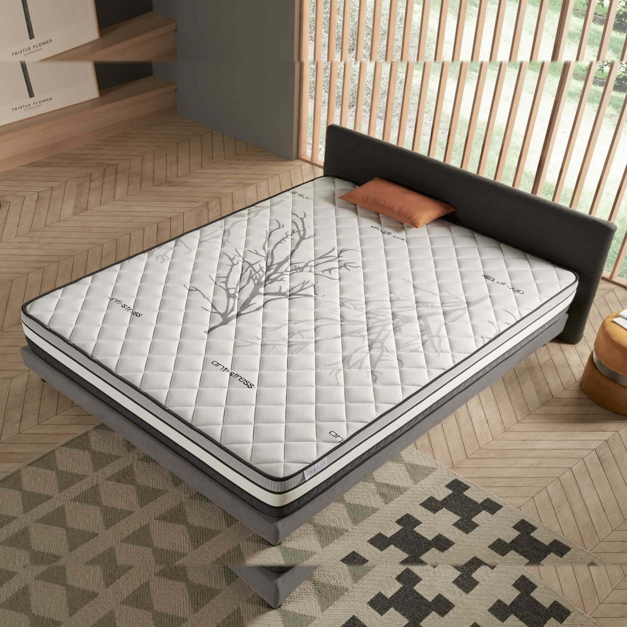 Mousse de Haute Qualité : La nouvelle mousse haute résilience (HR) à mémoire de forme garantit un confort idéal, même pour les personnes les plus exigeantes. De ce fait, ce modèle offre un meilleur soutien que les matelas en mousse à mémoire de forme habituels, tout en proposant une adaptation idéale sur les 7 zones de pressions de votre corps. Noyau Multicouche Novateur : La technologie Blue Latex combinée aux qualités reconnues de la mousse polyuréthanne Fleximax HQ, font de ce matelas, un des meilleurs matelas actuellement disponibles sur le marché. Ces technologies de nouvelle génération promettent un soutien à la fois ferme et flexible pour un confort hors pair. Confort Haut De Gamme : La Mousse à mémoire de forme V200 haute densité sur la face hiver vous offre un accueil tonique et durable pour une adaptation optimale aux formes du corps en un instant. Ventilation Supérieure : La Mousse à mémoire de forme V30 de nouvelle génération sur la face été a la capacité de réguler la température pour des nuits plus agréables grâce a la technologie Air Fresh. Technologie Air Fresh : Cette innovation assure une circulation parfaite de l'air et empêche la concentration de tout type d'humidité dans la literie. Tous nos matelas sont certifiés Oeko-Tex, garantissant l'absence de substances novices. Garantie 5 ans.