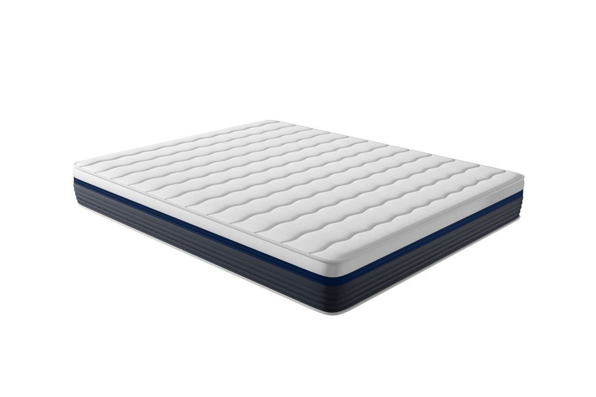 Matelas Zen 25 cm de confort pour des nuits réparatrices Offrez-vous un sommeil de qualité avec le matelas Zen, pensé pour allier confort, maintien et fraîcheur. Grâce à ses 25 cm d'épaisseur, il procure un soutien mi-ferme idéal, tout en préservant une bonne indépendance de couchage. Son garnissage combine : Une fine couche de mousse à mémoire de forme (0,5 cm) et 2 cm de mousse adaptative pour un accueil moelleux et une sensation'enveloppante, Une mousse de soutien de densité 23 kg/m³, structurée en zones de confort pour épouser chaque partie du corps et limiter les points de pression. Son tissu 3D respirant favorise la circulation de l'air dans le matelas, pour des nuits plus fraîches, plus saines et sans humidité. Le matelas Zen, cest léquilibre parfait entre confort et bien-être pour transformer chaque nuit en vrai moment de détente.