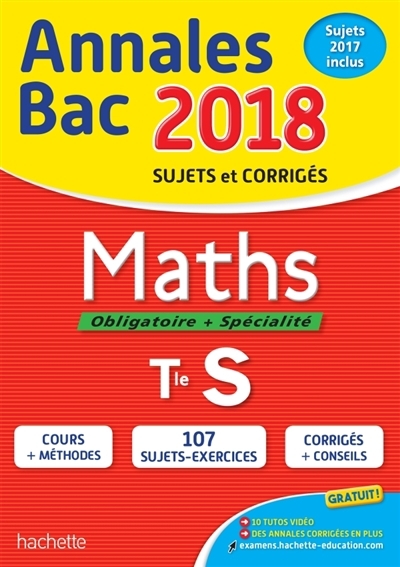 Maths, obligatoire + spécialité, terminale S : annales bac 2018 : sujets et corrigés, sujets 2017 inclus