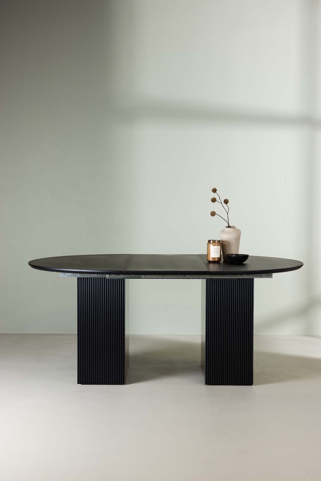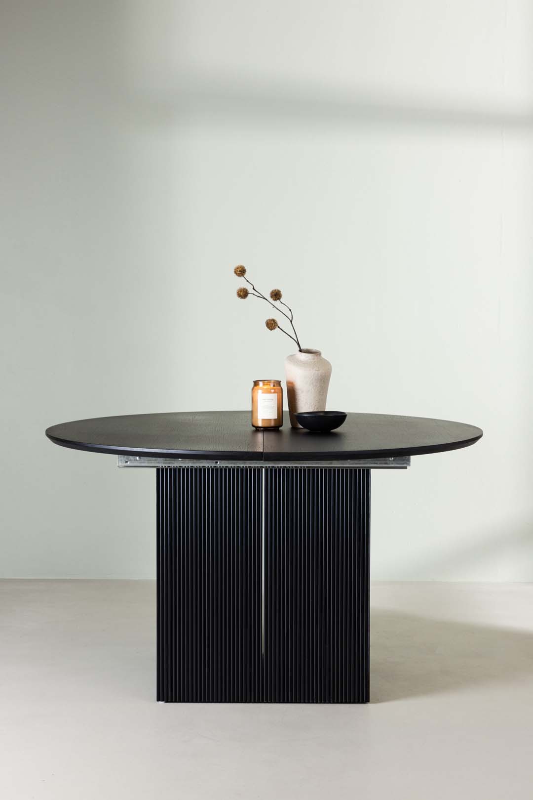 Matilda table de salle à manger Ø130cm, extenstible avec plateaux supplémentaires noir.