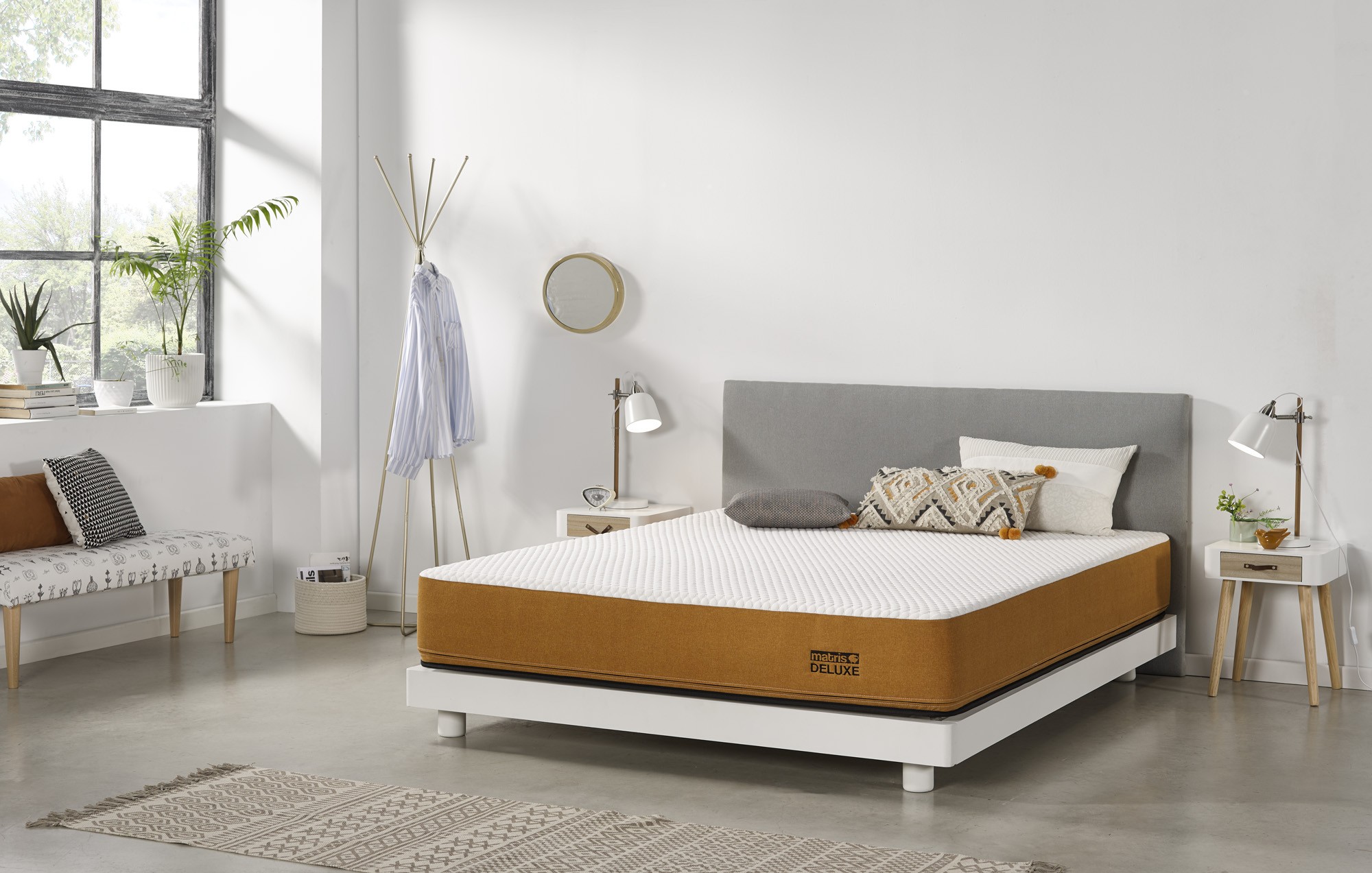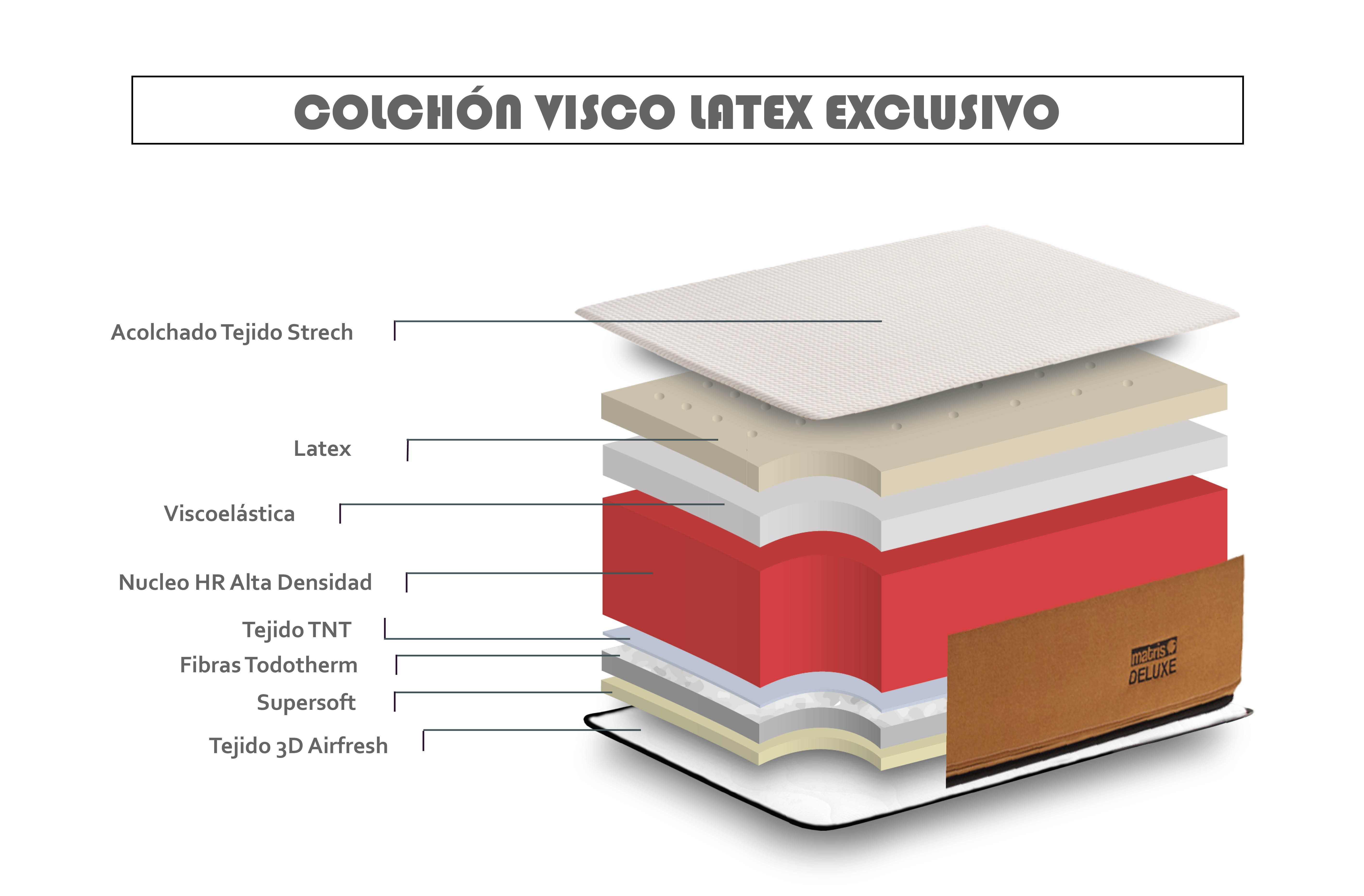 Le matelas en mousse viscoélastique par excellence. Une combinaison de mousse mémoire exclusive Matris Deluxe et 100% latex, s'adaptant à la morphologie de chaque utilisateur et procurant une sensation de confort unique. Le matelas Matris Deluxe offre une fermeté et un maintien parfaits pour s'adapter à vous. Nous avons créé le nouveau exclusif Memory Foam Matris Deluxe, et c'est notre secret. Aujourd'hui plus que jamais, notre formule magique est inimitable. L'interaction entre les couches de confort, d'amorti et de soutien est encore meilleure. Voulez-vous savoir pourquoi Matris Deluxe est différent? Caractéristiques techniques: • Hauteur 24 cm +/- 2. • Fermeté: moyenne-élevée. • Rembourrage: Premium 4 cm de mousse mémoire exclusive Matris Deluxe et 3 cm de 100% latex. • Support HR Matris Deluxe Foam, mousse haute résilience, a une élasticité unique. Fournit le soutien nécessaire pour votre région lombaire, éliminant ou soulageant les douleurs lombaires au réveil. Les canaux ont été rigoureusement placés pour tenir compte des différents besoins de soutien entre les zones des épaules, des lombaires et des jambes. • Tous les matelas Matris Deluxe sont facilement démontables, entre autres parce que nous n'avons rien à cacher, bien au contraire, nous avons beaucoup à apprendre. De plus, la housse fait partie du confort, elle est rembourrée, moelleuse et super agréable. • Rembourrage bas de la face: tissu tridimensionnel entrelacé hautement respirant et toucher doux. • Bordure: Coutures spéciales de sécurité de la bordure pour une meilleure compacité. Traitements et certificats de nos matelas: • Fonction hygiénique Sanitized® (spécialiste du traitement antimicrobien des textiles) qui protège les matelas contre la formation de moisissures et d'algues, réduit la présence d'acariens et offre une protection durable. • Anti-humidité: Il est fabriqué avec un tissu de dernière génération, qui permet une circulation optimale de l'air, évite l'accumulation d'humidité et maintient le matelas ventilé, créant la température idéale pendant que vous dormez. • Technologie Sanitized: anti-fongiques, anti-bactérien et anti-acariens. Cet article a bénéficié d'un traitement biocide anti-bactérien. La (les) substance(s) active(s) contenue(s) dans le traitement sont: Dimethyltetradecyl (3-trimethoxysilyl propyl) ammonium chloride ( N°CAS 41591-87-1). Les produits biocides sont des substances ou des préparations destinées à détruire, repousser ou rendre inoffensifs les organismes nuisibles, à en prévenir l'action ou à les combattre, par une action chimique ou biologique • Silencieux: Grâce à sa structure et sa composition, il ne produit aucun bruit lors des mouvements que notre corps fait pendant son sommeil. • Indépendance des lits. • Nos matelas ont été créés pour respecter le bon alignement de notre colonne vertébrale pendant que nous nous reposons. • Tous les tissus que nous utilisons pour fabriquer ces matelas sont conformes à la norme OEKO-TEX® 100 (produits sans substances nocives). Instructions d'utilisation, d'entretien et de garantie. • Le matelas est expédié enroulé et emballé sous vide. • Il est conseillé de ne pas utiliser le matelas jusqu'à 10 heures après avoir été déballé. • Protégez-le avec une housse ou un protecteur. Passez l'aspirateur au moins une fois par mois. Rappelez-vous qu'il doit aller sur une surface uniforme et ne pas laisser de vides qui causent une déformation. • Tournez-le fréquemment. 2 ans de garantie. Fabriqué en Espagne.