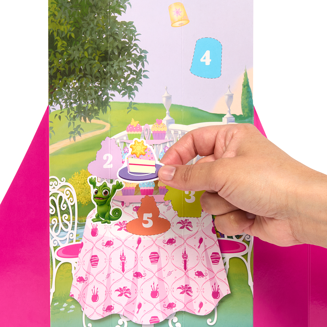 Des surprises et des indices apparaissent en tournant le coffret. Et grâce au jupon réversible et aux 5 accessoires, Raiponce personnalise sa tenue.