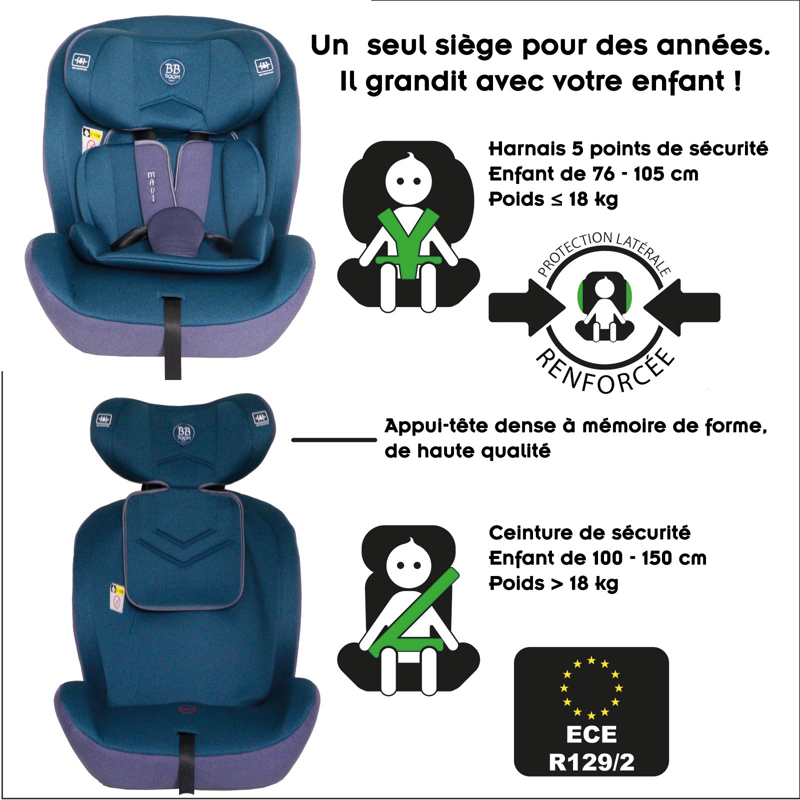 | Libellé | MAUI Siège-auto ceinturé évolutif R129 76-150 cm pour enfant Bleu |