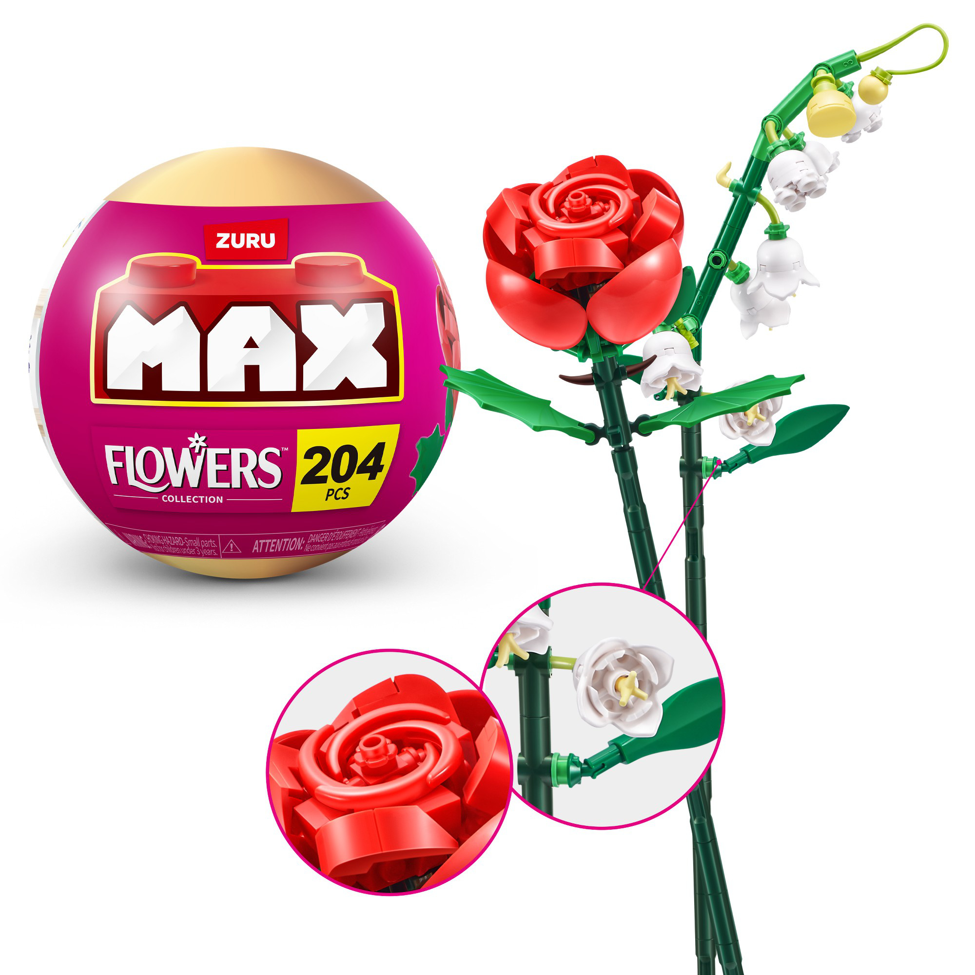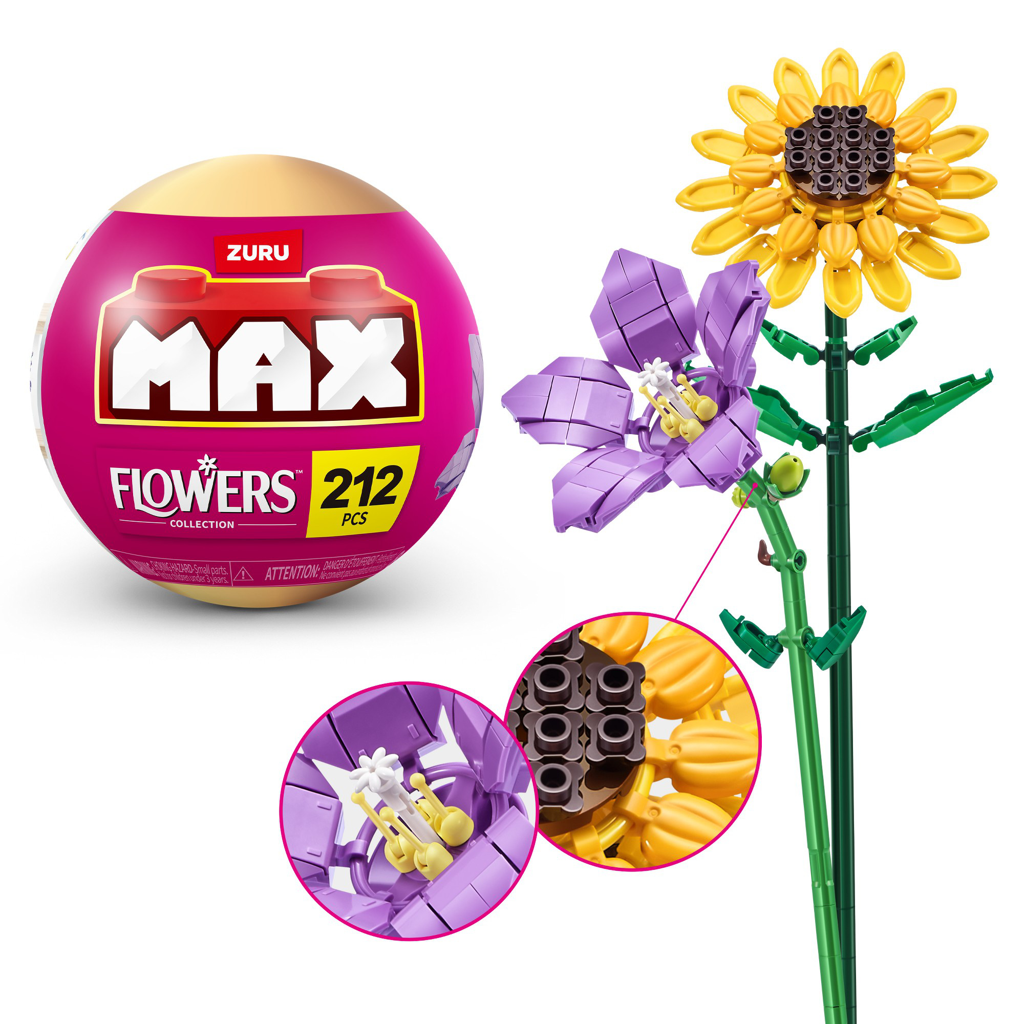 Crée 2 fleurs sur tige en briques de construction Max Flower par capsule