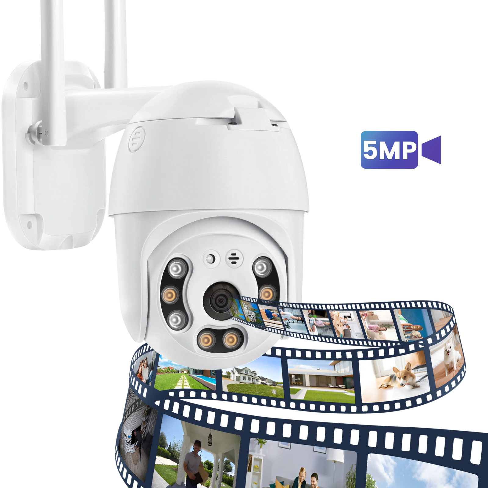 Cette caméra Wi-Fi 5MP assure une surveillance extérieure fiable grâce à sa tête motorisée rotative et sa vision nocturne couleur LED. Connectée en 2.4G / 5G, elle offre une image précise, un zoom numérique et un audio bidirectionnel pour communiquer à distance. Les alertes de mouvement en temps réel renforcent la sécurité de votre domicile. Installation simple, idéale pour jardin, entrée ou garage.